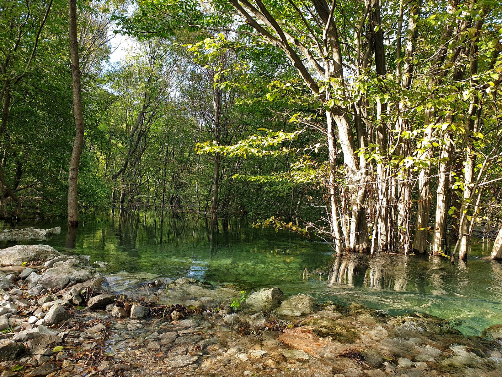Dubina ovih jezera može biti do čak 30 metara te tako u potpunosti prekriti krošnje stabala na livadama, kao i obližnju lovačku čeku. Iako u rano proljeće drveće još nije zazelenilo, livada obiluje vijesnicima proljeća kao što su rascvali divlji šipak, visibaba ili ljubičica. Kasna nam pak jesen, dok lišće još nije otpalo, pruža mogućnost jedinstvenog ronjenja između bujnih krošnji stabala.