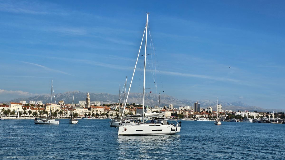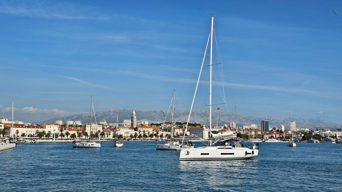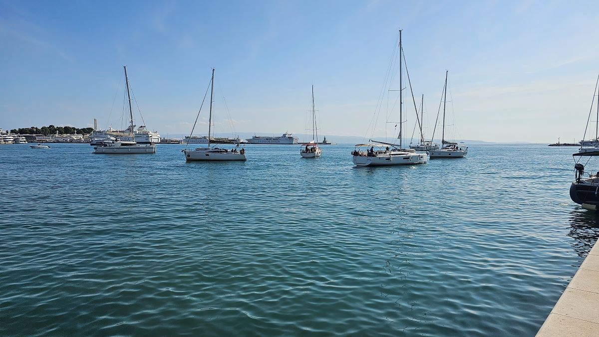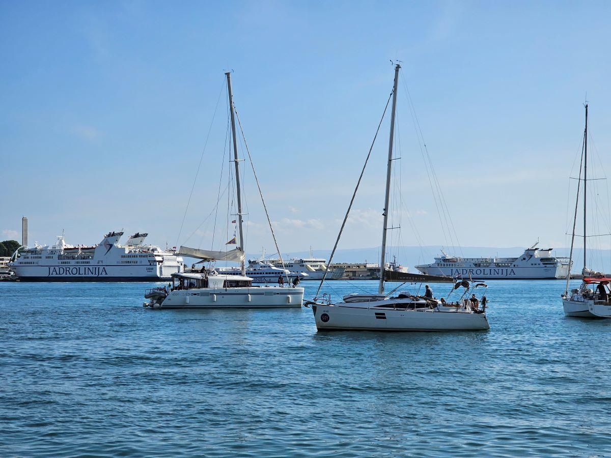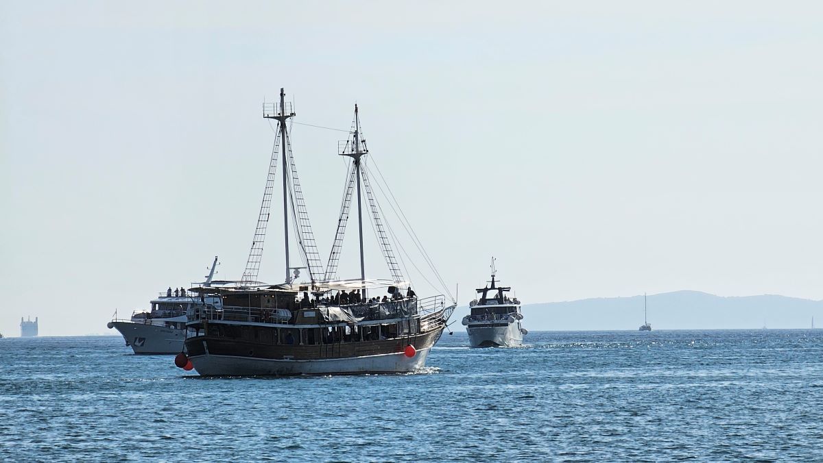 Jedrilice se ponosno pokazuju u svoj svojoj ljepoti dok turistički brodovi između njih voze turiste u obilazak.