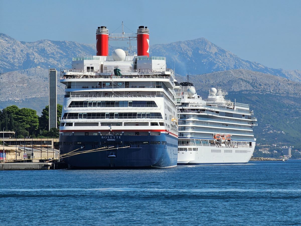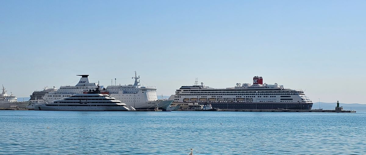 Na vanjskom vezu splitske luke su danas usidrena dva kruzera dok dva teretna broda čekaju da dođu na red za ukrcaj/iskrcaj u Sjevernoj luci.