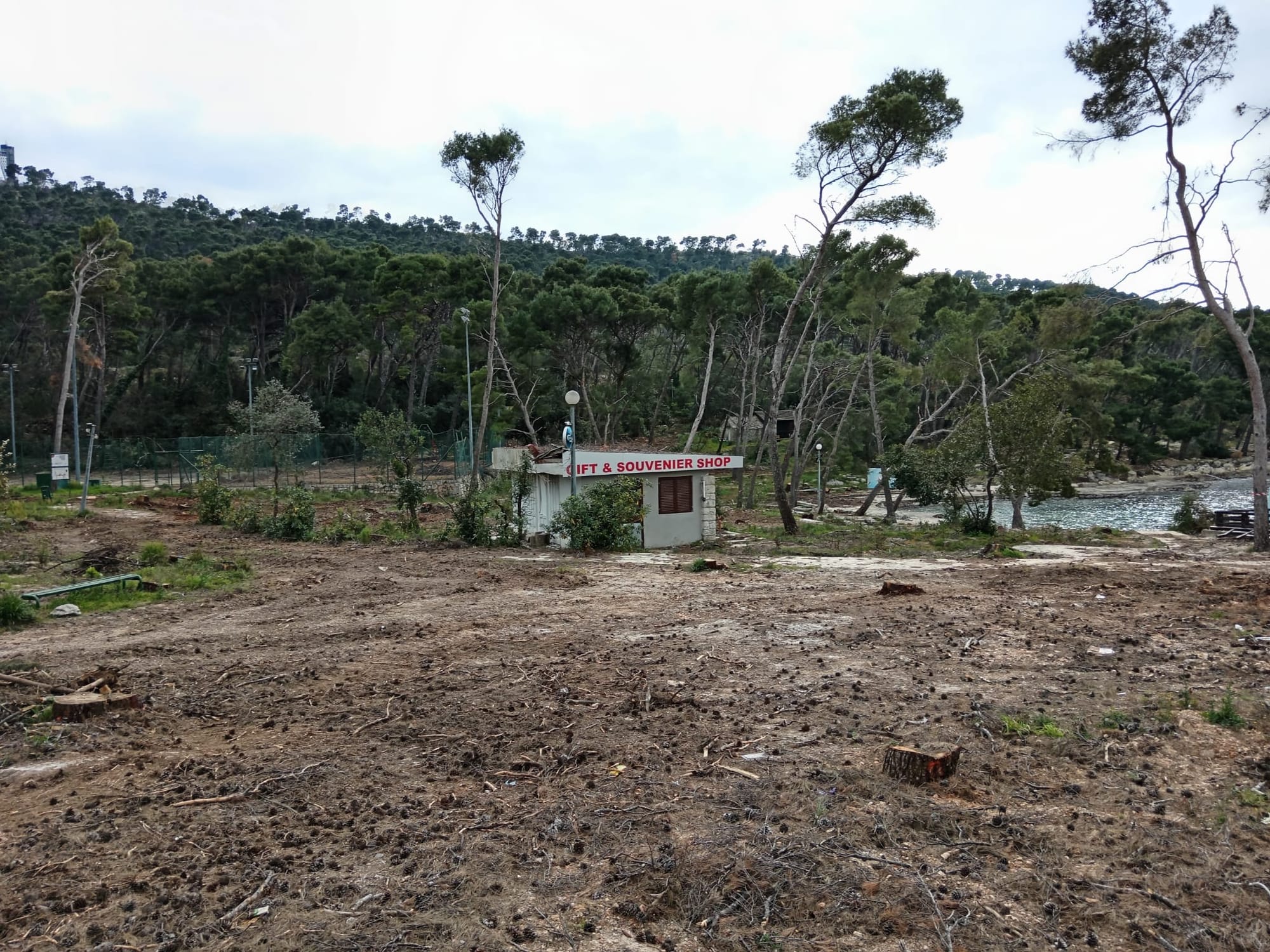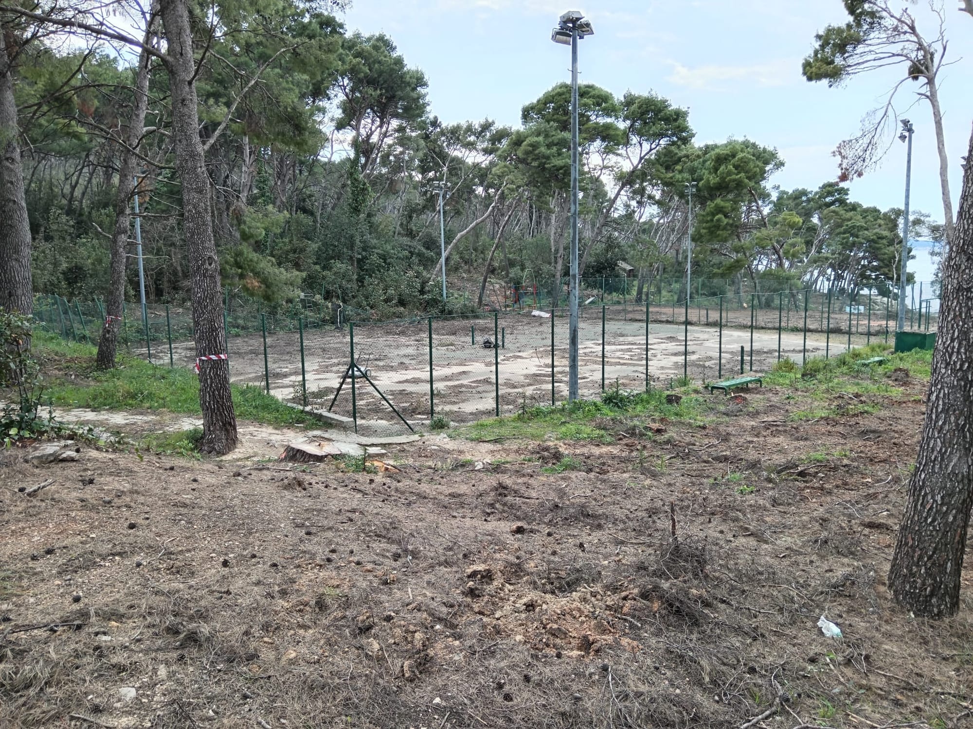 Tek sada, bez šumskog plašta, jasno se vide razmjeri sustavne devastacije proteklih desetljeća:1700 m² nelegalnih teniskih terena.900 m² nelegalnog nogometnog igrališta.350 m² izbetoniranih platoa za štekate. Ukupno je oko 3000 kvadrata javnog prostora i prirode oteto stablima isključivo radi profita nezasitnih koncesionara.