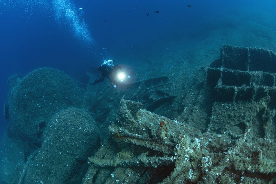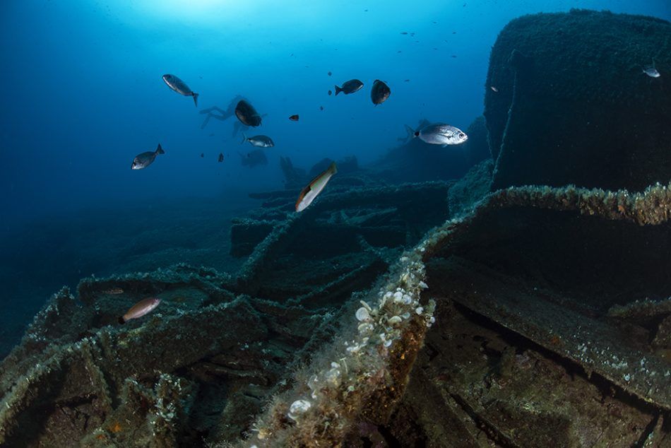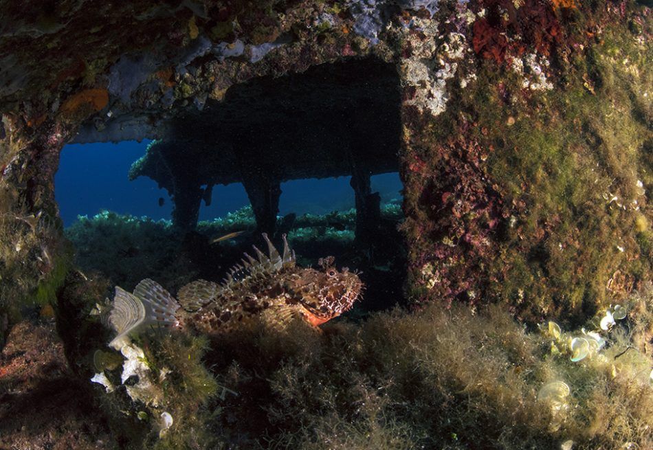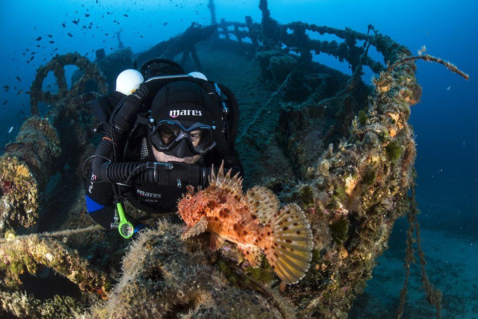 Na maksimalnoj dubini od 34 metra, ovaj brod poprima onaj svoj prepoznatljiv izgled: okrugla krma i vizura gotovo cijelog broda, a u prvom planu kormilo prekriveno spužvama, uz poneku nezaobilaznu crvenu škarpinu koja se lijeno odmara na krmenoj ogradi. Baš takva je počastila i nas svojim prisustvom spremno pozirajući već navikla na bljeskove fotoaparata.