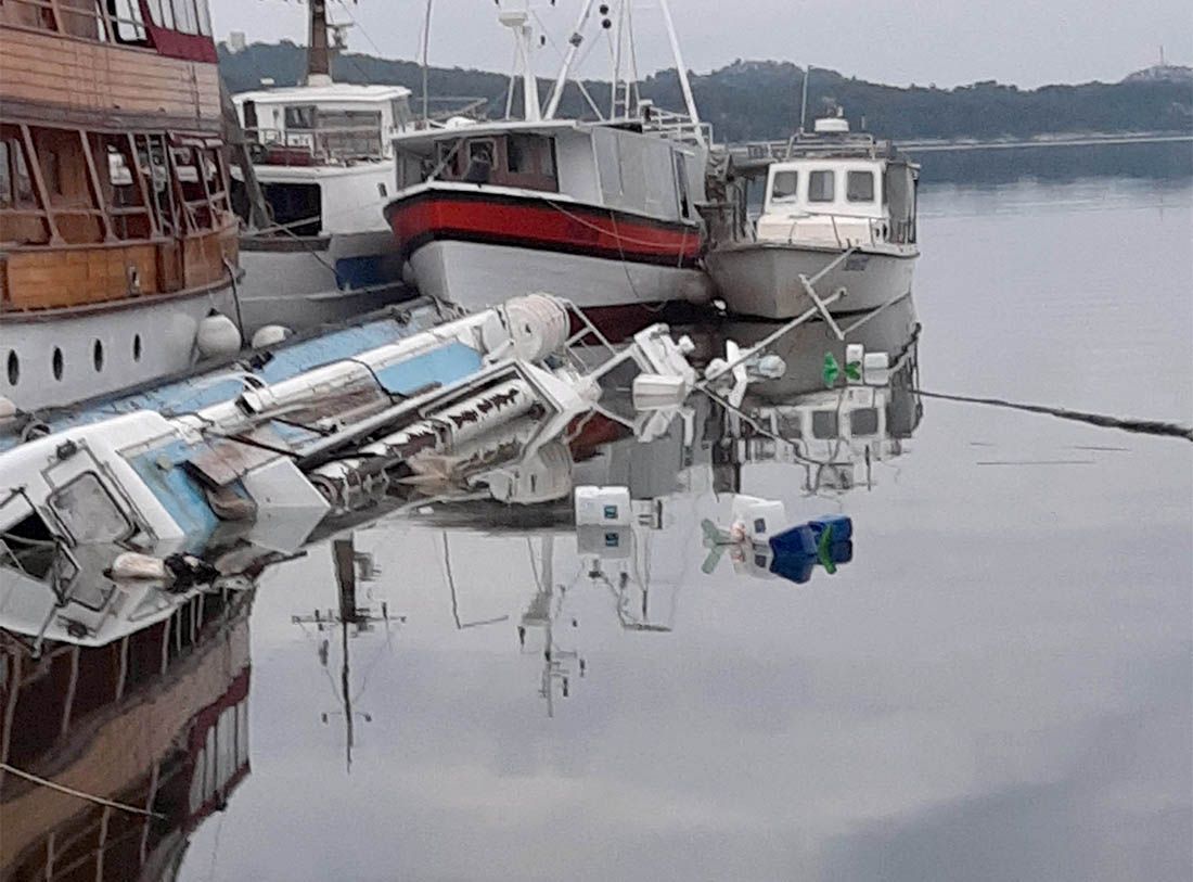 Potonuo katamaran Mislav ispred šibenske luke – Kapetanija na terenu, postavljaju se brane