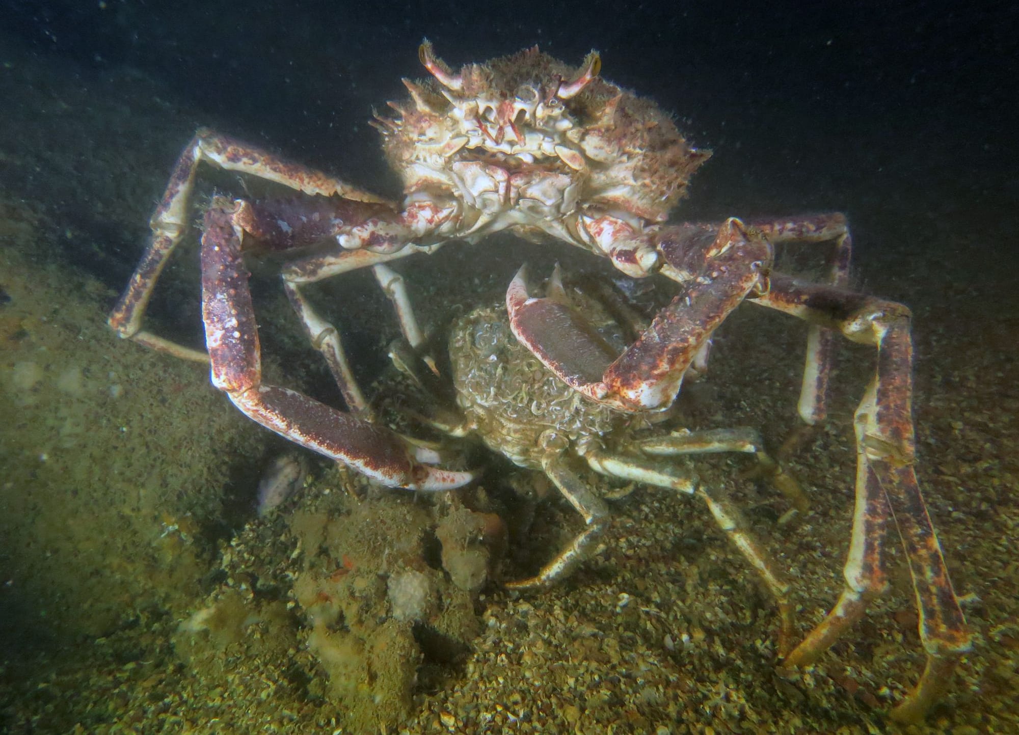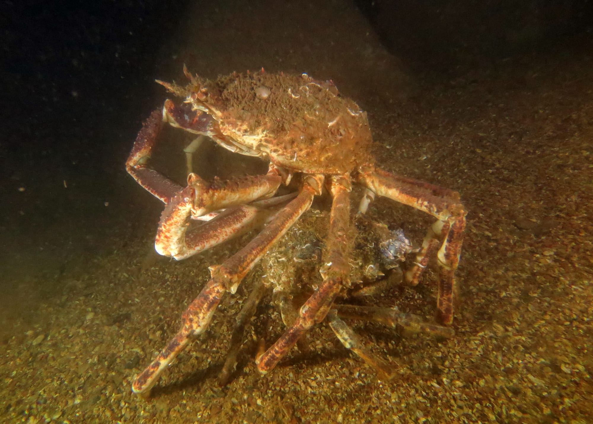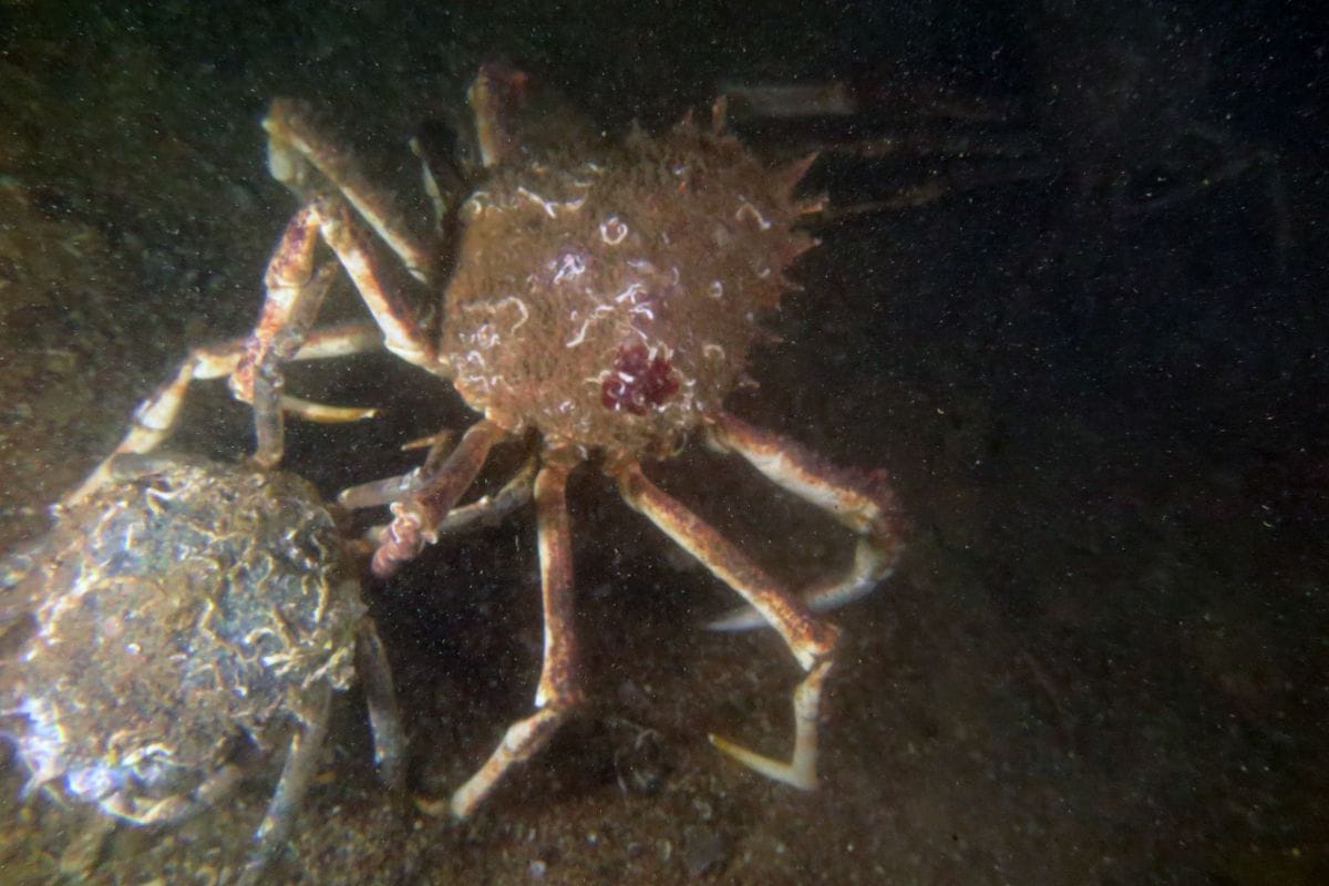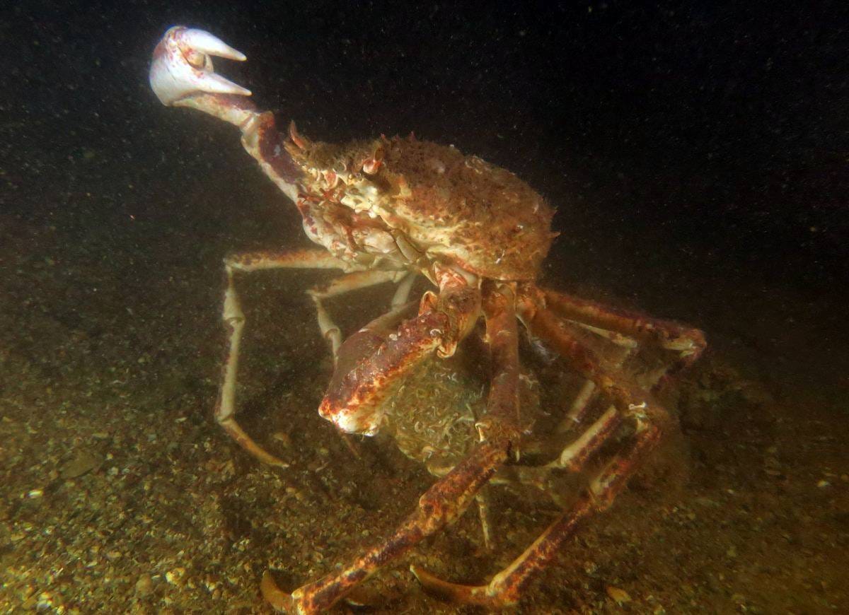 - Kad smo se približili mužjak je ženku čuvao ispod sebe zaštićenu nogama kao u nekom kavezu ne dozvoljavajući da joj se približimo i mašući kliještama prema nama na taj način nam dajući do znanja da nismo dobrodošli!