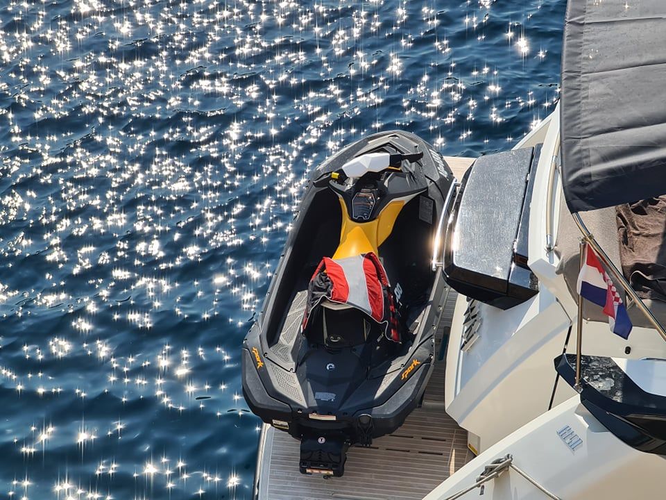 Možete vidjeti da na moru postoje dva skutera, jedan zapravo pripada mome prijatelju i njime se koristi, ali nakon nekog vremena nestaje s desne strane (plovi polako) i radi se o čovjeku s jahte koji divlja u uvali.