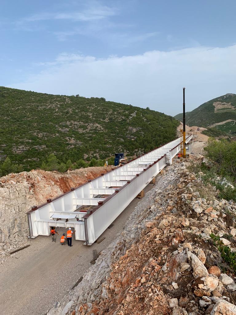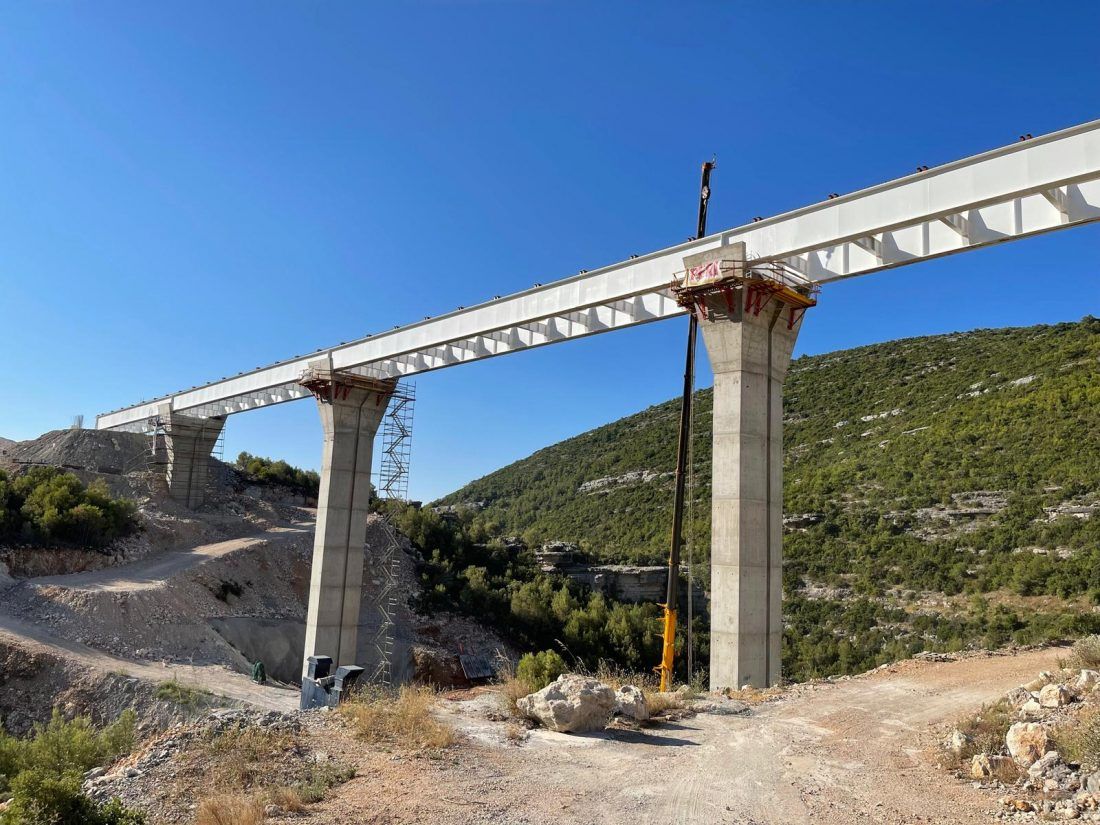 PRAPRATNO – Sredinom kolovoza Brodosplit je odradio montažu čeličnog dijela gornjeg ustroja vijadukta Prapratno na trasi pristupne ceste za Pelješki most.
