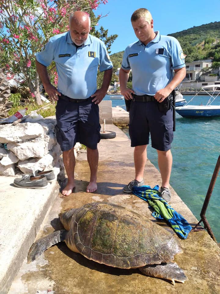 Gđa. Stanka Amadeo i gosp. Miljenko Marukić pronašli su sredinom srpnja ozljeđenu kornjaču, te su dojavom na 112 zatražili pomoć. Radilo se o velikoj, muškoj jedinki s oklopom dužine 75 cm. Kornjača je bila dezorijentirana, s vidljivim ozljedama na glavi i nije mogla zaroniti.