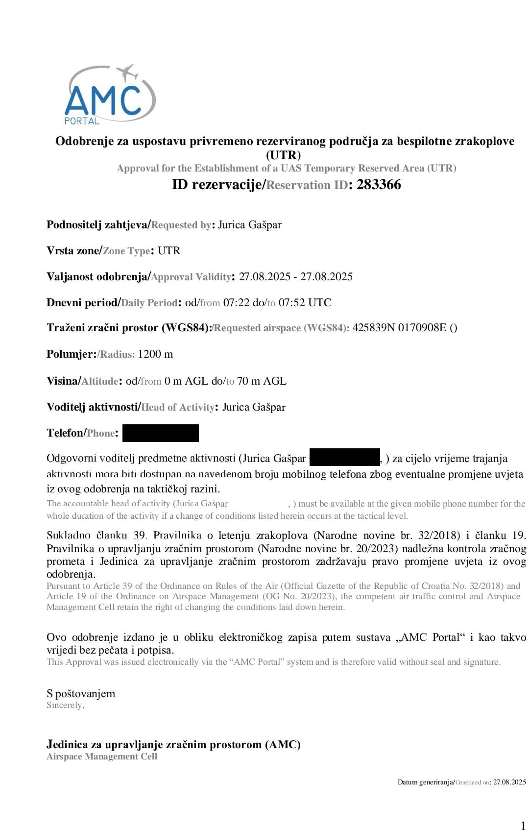 Treba reći da u Hrvatskoj letenje dronom mogu zabraniti jedino nadležna tijela za upravljanje zračnim prostorom i sigurnost zračnog prometa, prvenstveno Hrvatska agencija za civilno zrakoplovstvo (CCAA) i Hrvatska kontrola zračne plovidbe (HKZP). Letenje dronovima u kontroliranom zračnom prostoru dozvoljeno je samo uz njihovo prethodno odobrenje, a na aplikaciji AMC-a preko koje se šalje zahtjev za letenje, nema ama baš nikakvih ograničenja (pogledajte sliku niže)!