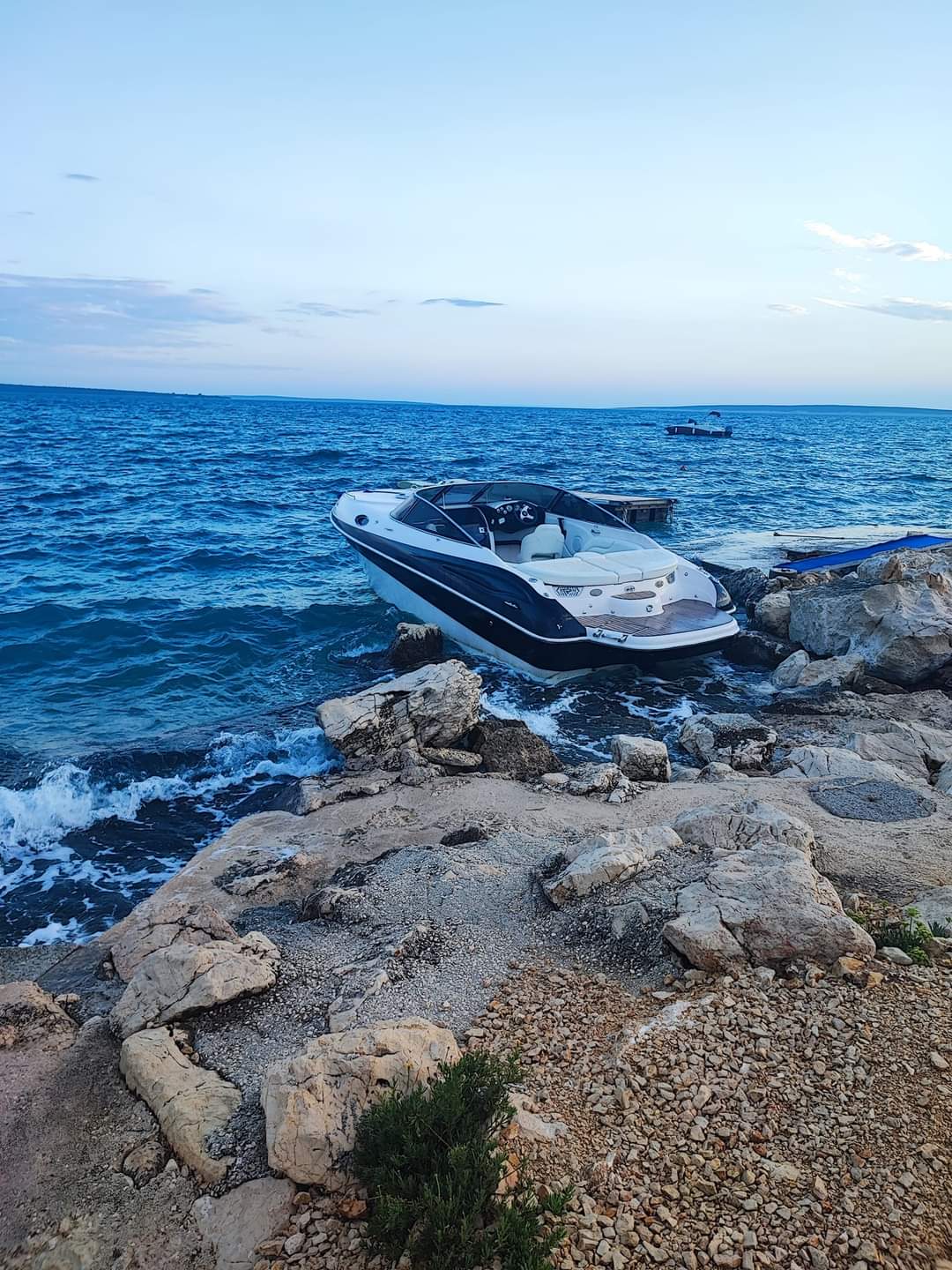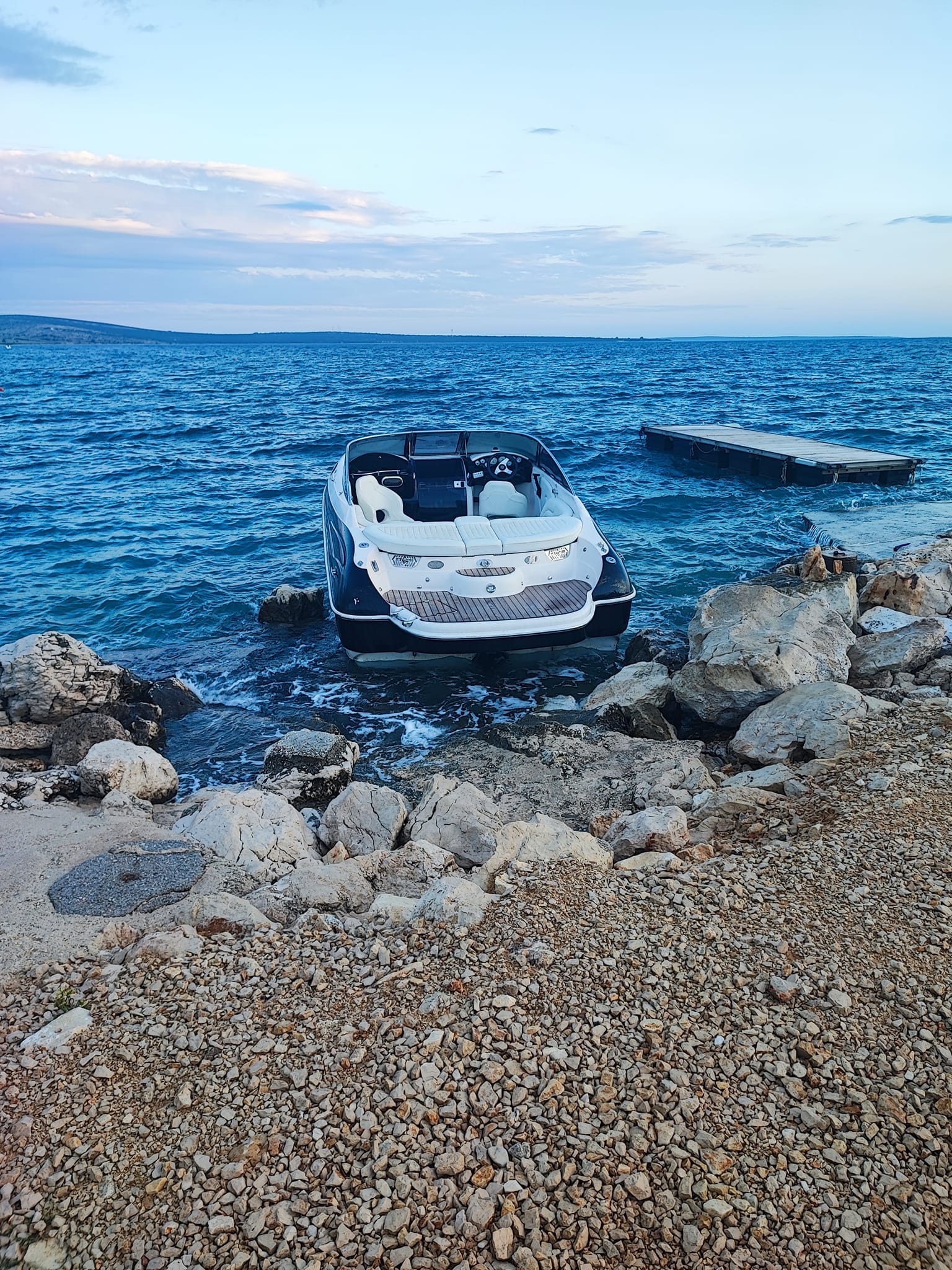 NOVALJA - U Gajcu kod Novalje na otoku Pagu, jučer je, oslobođen od okova priveza zaplesao ovaj gliser.