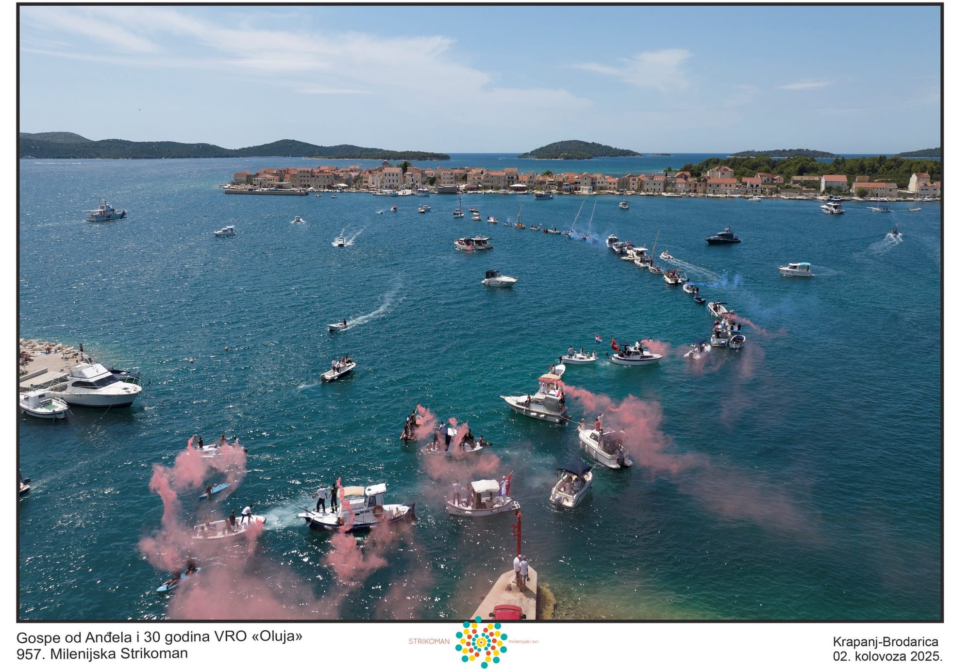 BRODARICA/KRAPANJ - Na blagdan Gospe od Anđela, zaštitnice otoka Krapnja, vizija generacija Krapljana da simbolično spoje otok i kopno postaje stvarnost. Tog dana, u velikoj svečanosti zajedništva, čamci i brodovi spojili su Brodaricu i Krapanj – brod do broda, u čast 30. obljetnice Oluje.