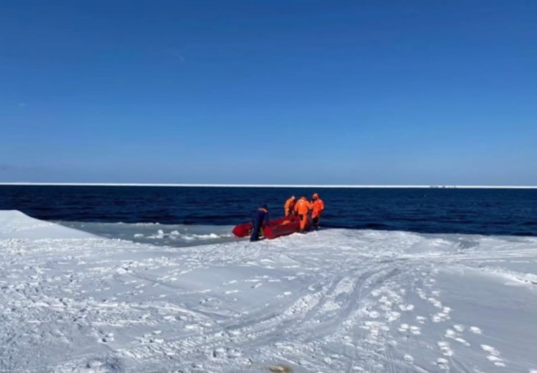 Kako je objavljeno, u petak poslijepodne u okrugu Dolinsky, 1,5 km od obale, nastala je pukotina široka 5-6 metara u brzom ledu. Na otkinutom komadu leda bili su zaljubljenici u pecanje na ledu.