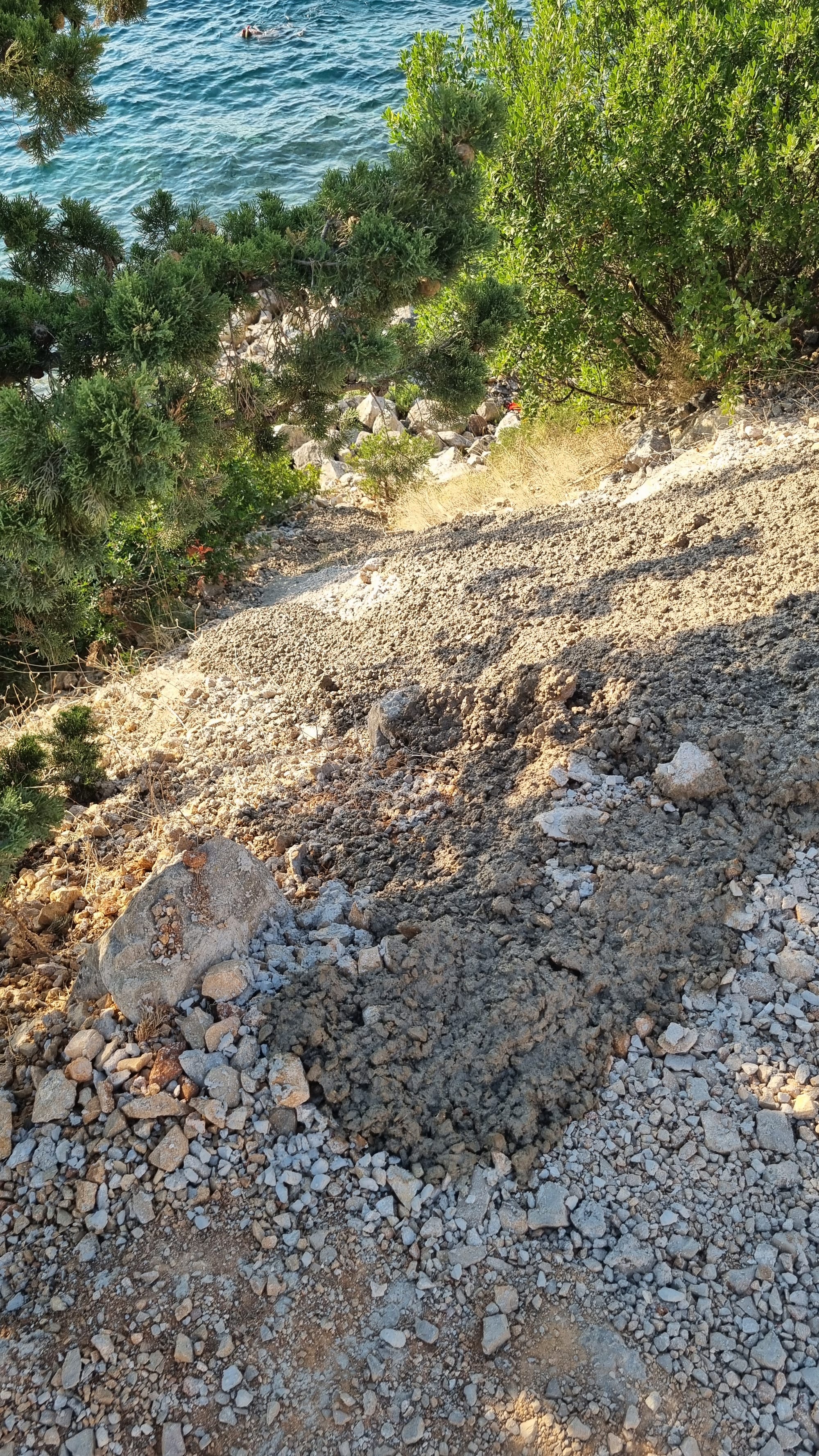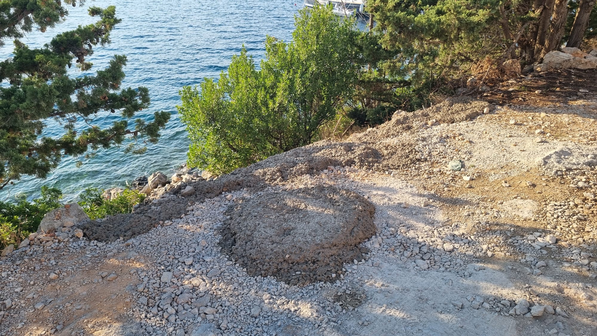 - Cesta koja se nalazi na parceli 5924/9 upisana je kao pomorsko dobro (to je cesta zapadno od parcele 5924/17 na kojoj se gradi). Snimio sam kako su beton koji je preostao nakon betoniranja bacili uz more, na padinu kod te ceste, direktno uz more. To je doslovno bacanje betona na pomorsko dobro. Također, uz kuću (ruševinu) na parceli 5924/9 već postoje nasipani prostori nastali odlaganjem otpadnog materijala i betona, a ti nasipi dakako ne smiju biti tu - izvođač je bacao materijal po pomorskom dobru - napisao nam je čitatelj s Visa.