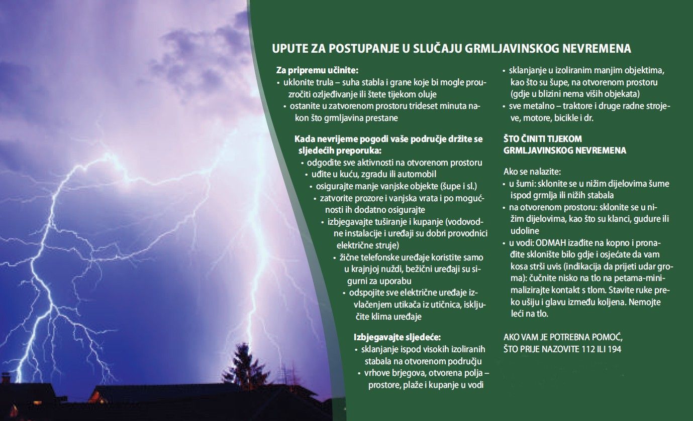 Ravnateljstvo Civilne zaštite podsjeća na preporuke i korisne savjete kojih se trebamo pridržavati u slučaju grmljavinskog nevremena i jakog vjetra.