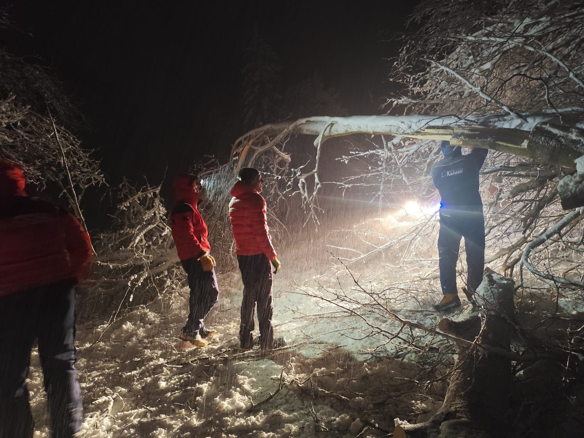 U akciji je sudjelovalo 14 članova koji su se probijali kroz snijeg i zapreke iz dva smjera, uz veliku pomoć zimskih službi. Vozilo je pronađeno zameteno u snijegu, a obitelj (2 odraslih i 4 djece) je odmah zbrinuta i sigurno prevezena na toplo.