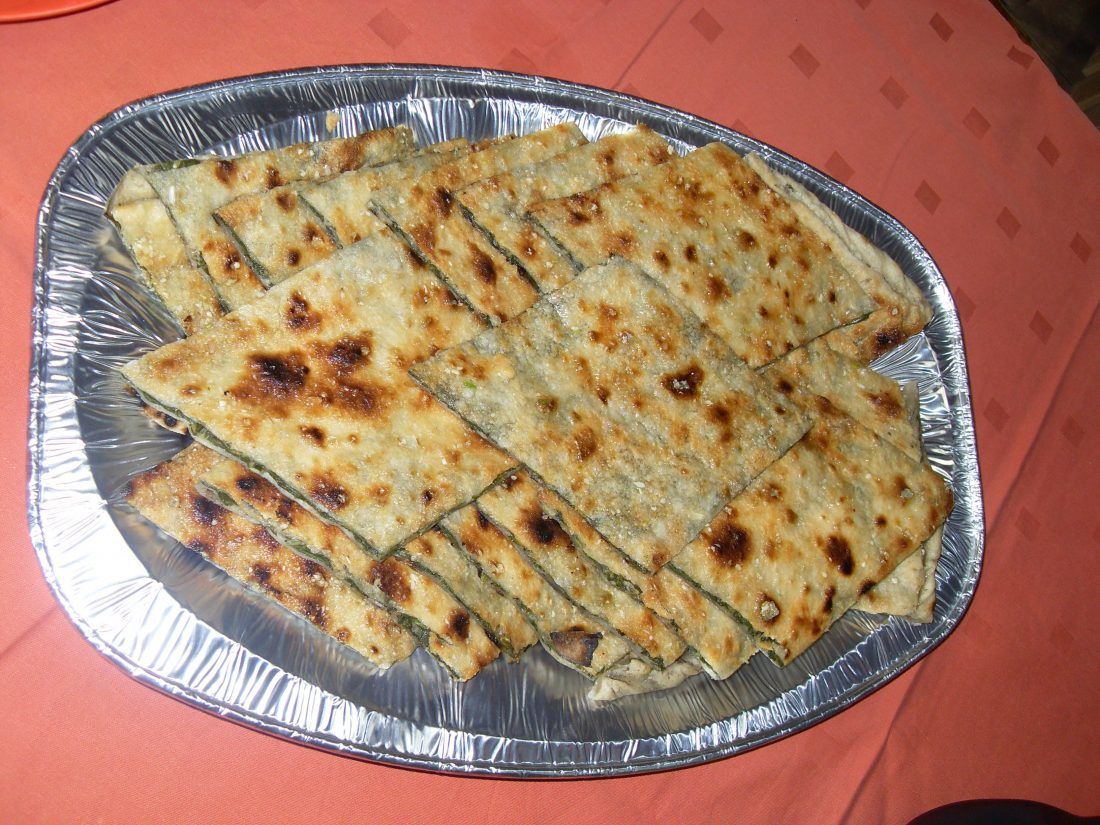 Nakon što je prvi sloj tijesta prekriven mješavinom povrća, na njega se stavlja drugi sloj i pita se začepi upletenim rubom; spreman za pećnicu. Zatim se masivni soparnik sklizne sa sinije na vrući kamen.