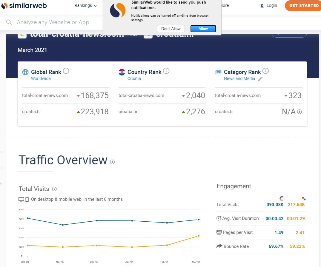 – Alexa rangira Total Croatia News, Hrvatsku turističku zajednicu i naš novi projekt Total Croatia. Kao što vidite TC raste brzo. Pokrenut ćemo ga 1. svibnja na deset jezika u Dubrovniku i postat će dominantno mjesto za hrvatski turizam (barem po mom mišljenju) na svim relevantnim turističkim jezicima. Želimo surađivati s velikim i malim privatnim poduzećima kako bismo ponudili pravi hrvatski turistički proizvod. Iako je web stranica vrlo nova (nakon lažnog početka u prosincu 2018., ponovno sam je pokrenuo prije 2 mjeseca kao izravnu posljedicu ovih tužbi), do ljeta ćemo se rangirati više od HTZ-a (a promet je 100% organski) – pojašnjava Paul.