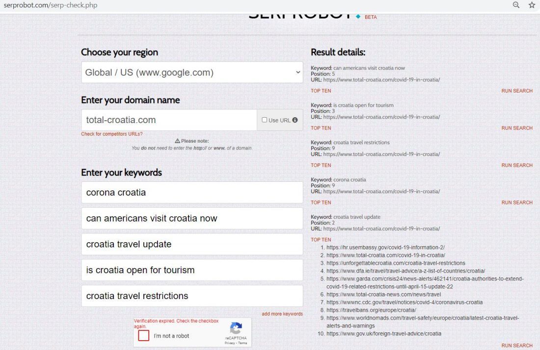 Stranica još nije gotova, ali hranimo Google spodacima. Vaše bi čitatelje mogao zanimati iskren pogled emigranta na život u Hrvatskoj posljednjih 18 godina. Tu su, zatim i korisne informacije o putovanjima za turiste (i lokalno stanovništvo u ovim pandemijskim vremenima) – evo nas, na primjer, broj 4 na Googleu za “od Splita do Dubrovnika“. Poljaci, primjerice, zaista uživali u našem vodiču za rakiju. Brazilci će očajnički željeti putovati nakon horora kojeg su proživljavali u koroni, pa evo kako njih natjerati da dođu u Hrvatsku. Francuski turisti moći će puno lakše pronaći put od Splita do Dubrovnika – za ovaj smo članak broj 4 na Google France. Razmišljate li o Hrvatskoj s kontinentalne Kine? Evo top 10 stvari koje treba učiniti 2021. godine, na kineskom. Ali ako dolazite iz Hong Konga, trebat će vam tradicionalni kineski – pojasnio nam je Paul Bradbury i zaustavio se ovdje, jer bi mogao nabrajati s konkretnim primjerima do sutra.