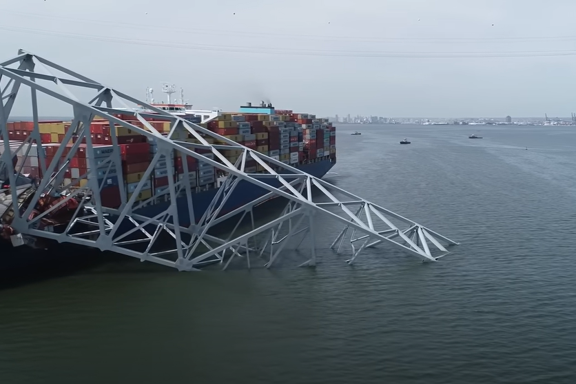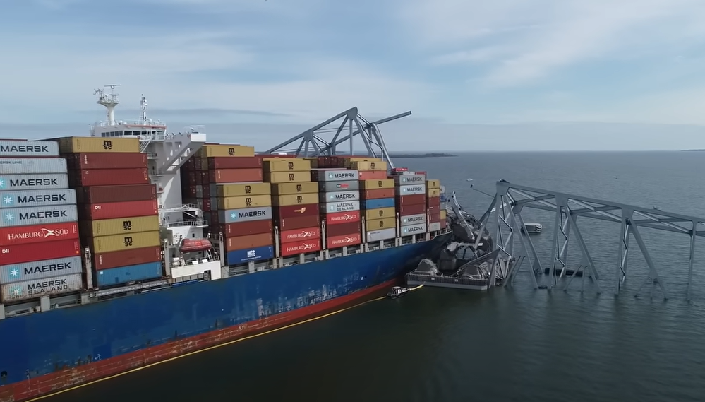 Veliki kontejnerski brod Dali (dug 300,0 m i širok 48,16 m) po isplovljenju iz Baltimorea, 26. ožujka 2024., oko 01:30 sati (05:30 UTC), pri brzini od oko 8 čv, udario je u noseći stup mosta, koji se odmah potom urušio preko nasukanog pramca broda Dali. Šest ljudi smrtno je stradalo. Šteta je ogromna, a sve posljedice i visina ukupnih šteta su nevjerojatno velike i teške.