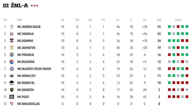 A na stranicama Hrvatskog nogometnog saveza na ljestvici koju predvodi upravo Jadran-Galeb nema loga ovog hrvatskog kluba.