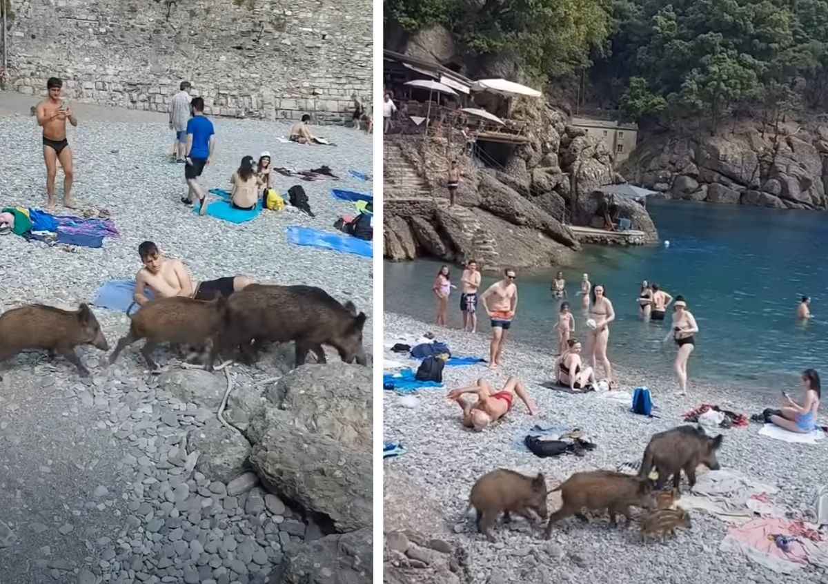 Na snimci koja se proširila društvenim mrežama vidi se medvjed koji pliva prema plaži prepunoj ljudi.