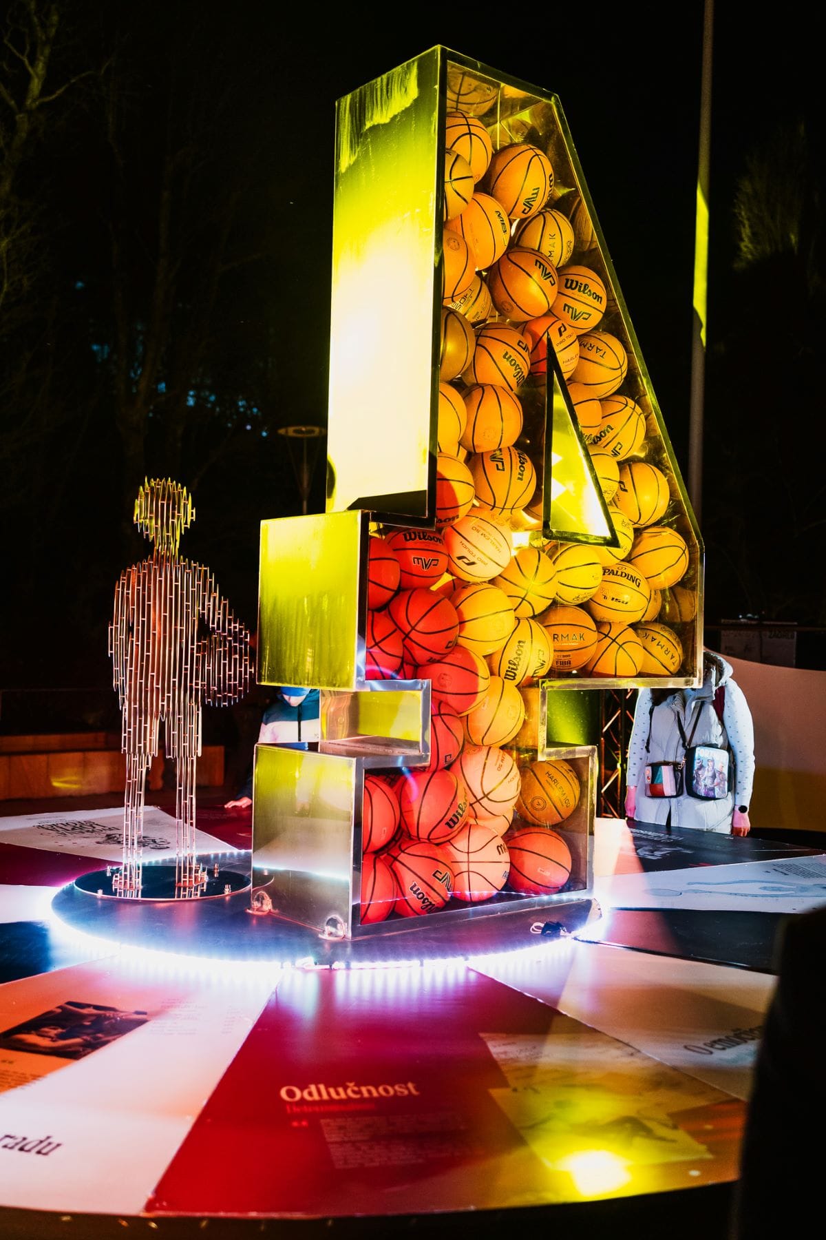 ŠIBENIK - Umjetnička instalacija 'Dvorana, lopta, stolice', izrađena u Šibeniku u spomen na košarkaškog velikana Dražena Petrovića, postavljena je privremeno na igralištu Tuškanac u sklopu Festivala svjetla. Rad potpisuje udruga Kolektiv 4B za Tvrđavu kulture Šibenik, a predstavljena je u rodnom gradu Dražena Petrovića u prosincu prošle godine.
