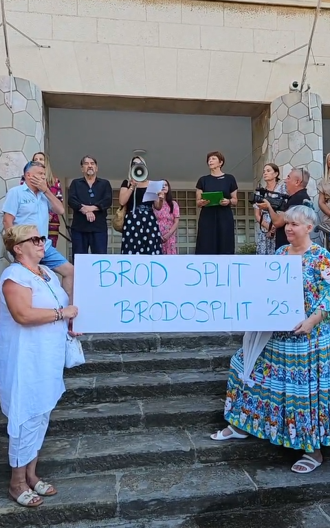Splićani su proteklih dana potpisivali peticiju da se brodu Moby Drea ne dozvoli uplov u škver, a sada članovi Građanske inicijative Zdravi Split prosvjeduju ispred zgrade splitske Gradske uprave.