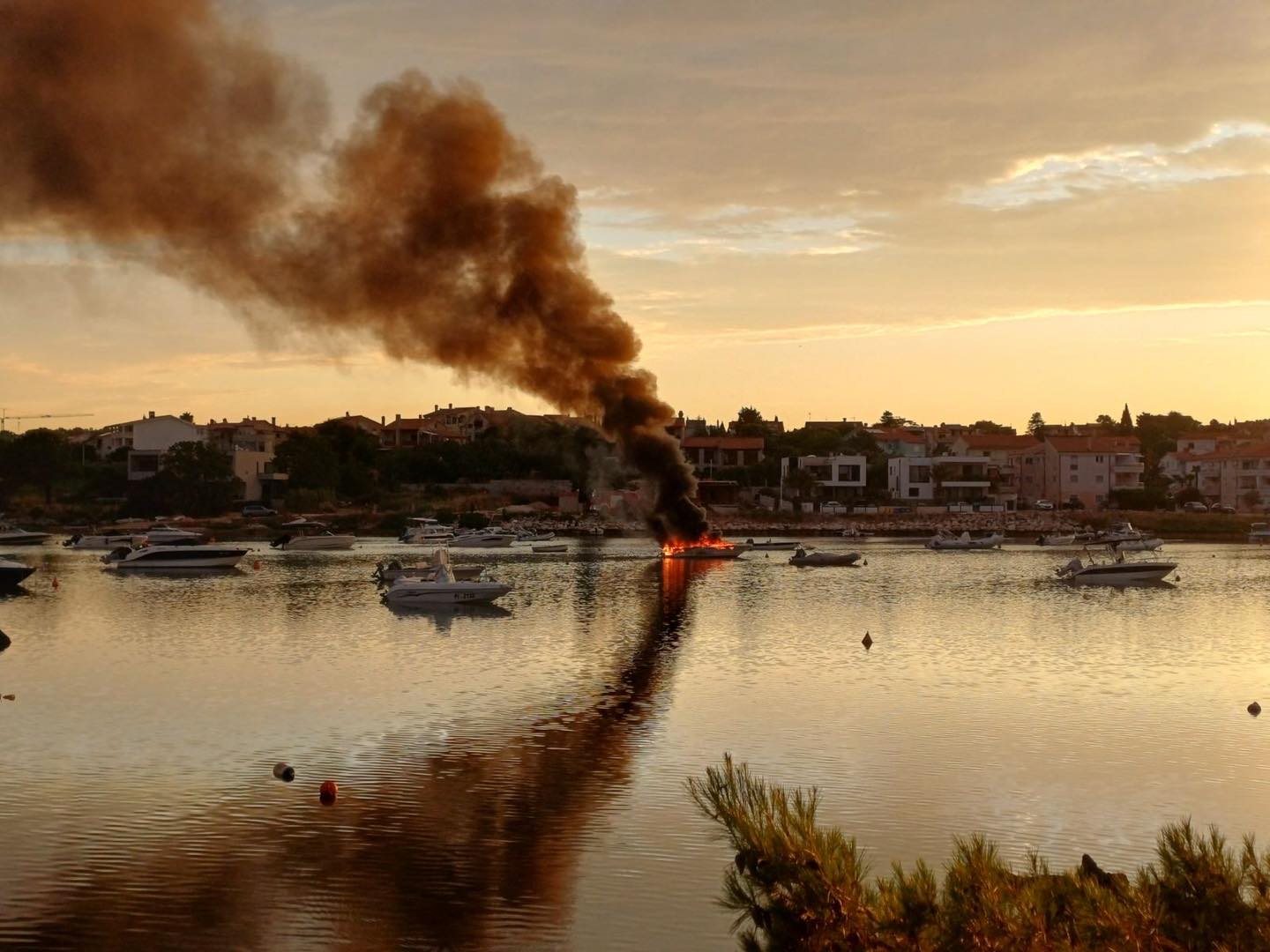 MEDULIN - U ranim jutarnjim satima izbio je požar na plovilu u Medulinu. Srećom, nema nastradalih, ali je gliser koji je bio na divljem vezu - potonuo.