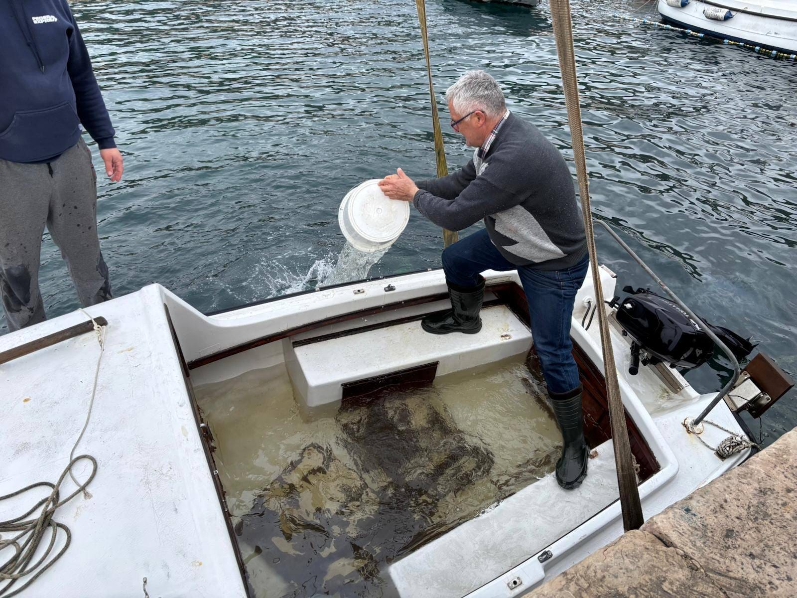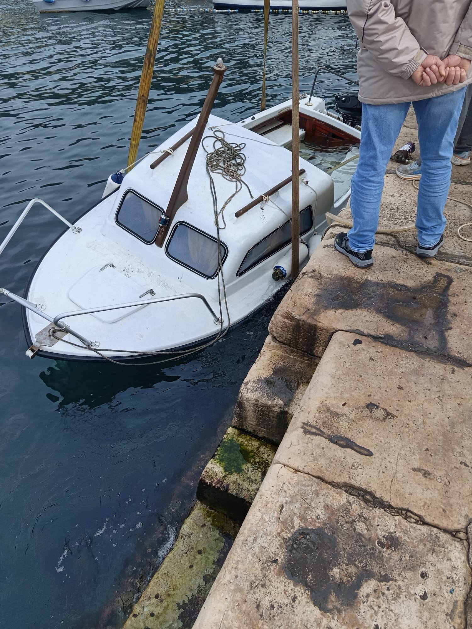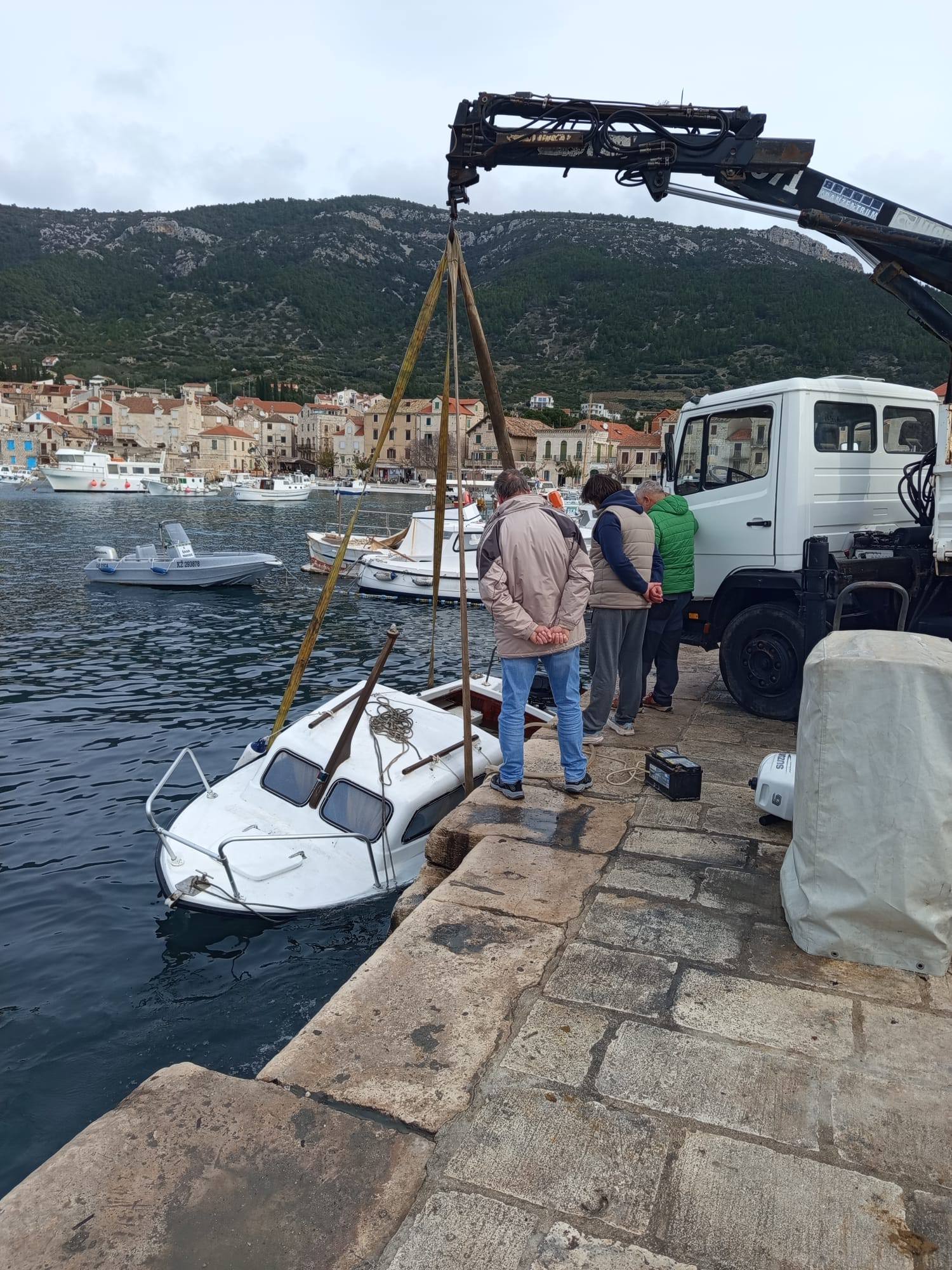 Jedna je brodica potonula u portu u Komiži pa ju je valjalo izvući prije sutrašnjeg juga i dodatnog pogoršanja vremena.