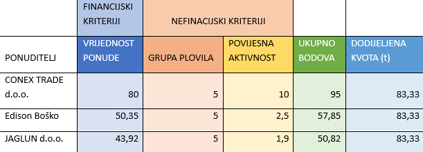 Ministarstvo poljoprivrede, šumarstva i ribarstva pokrenulo je postupak provedbe Javnog natječaja za dodjelu dijela državne kvote za ribolov plavoperajne tune (Thunnus thynnus) okružujućom mrežom plivaricom tunolovkom u 2026. godini („Narodne novine“ broj 32/26. – oglasni dio) na koji je pristiglo ukupno sedam ponuda.