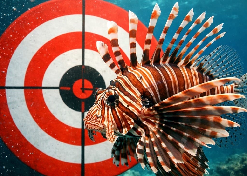 Za one koji nisu u ronjenju: lionfish uglavnom ne voli jako plitko more. To znači da se lov najčešće odvija dublje od 20 m, često 30–40 m a i dublje. To automatski ograničava vrijeme na dnu zbog dekompresijskih ograničenja. Efektivno radno vrijeme na dubini po ronjenju relativno je kratko. Veći spremnici zraka (plina) mogu ga nešto produžiti, ali to nisu “sati i sati”.