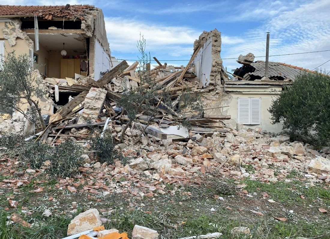 U krugu od 150 metara oštećeno je još najmanje desetak kuća, a tragovi izbijenih prozora, vrata, cigle, komadi betona razbacani su po vrtovima i maslinicima jedne od najprometnijih ulica u Preku, pišu Naši školji.