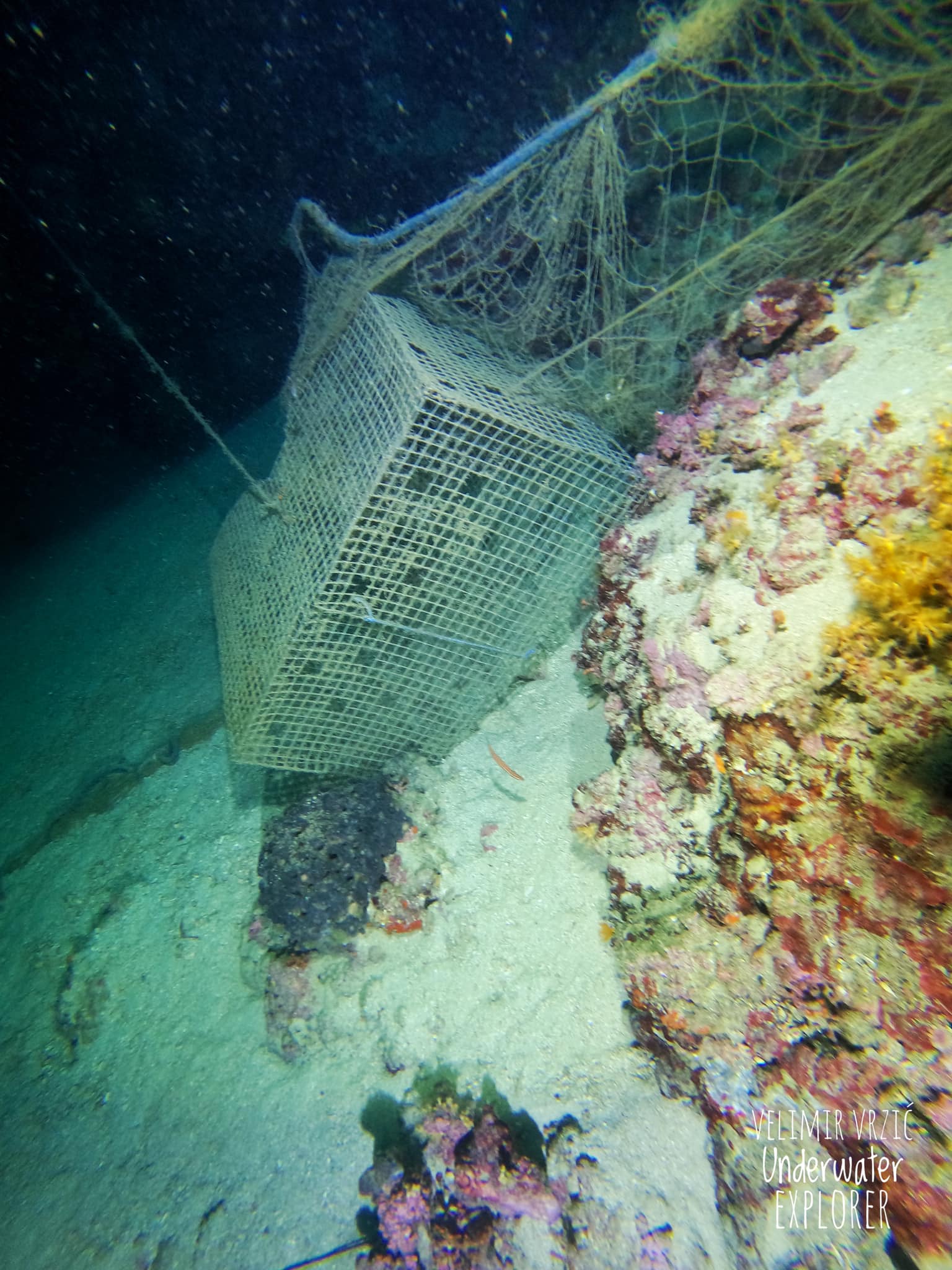 Na fotografiji koju sam snimio vidite dvije vrste ribolovnih alata. Dva različita vlasnika (različiti način izlova) čiji su se alati međusobno zapetljali i u totalnom kaosu izlova riba i rakova ostali vječno izgubljeni te poput duhova leže na samom dnu gdje zagađuju more i okoliš.