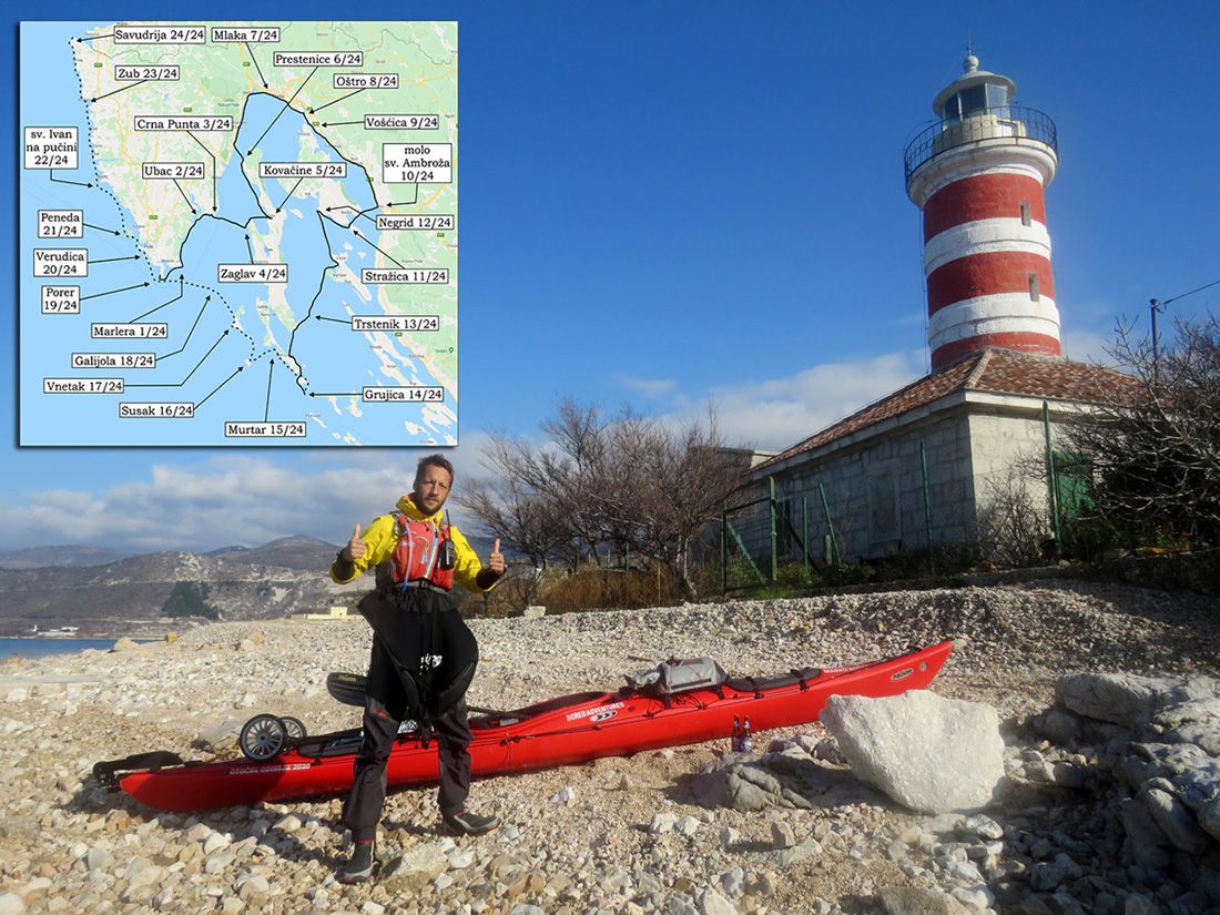 U ožujku 2019. godine odveslao sam 1070 km kajakom do 32 svjetionika koji su izgrađeni u 19. stoljeću na području Dalmacije. Veslanje do svjetionika u Istri i Kvarneru odgodio sam za zimu 2020. godine… napokon je došla druga polovica siječnja. Vrijeme je da sjednem u kombi i krenem iz Splita za Istru odakle krećem veslati sjevernim Jadranom. U odnosu na ekspediciju po Dalmaciji koja je trajala skoro 2 mjeseca, točnije 57 dana, avantura po Istri i Kvarneru ne bi trebala trajati više od mjesec dana. Sada imam nešto manje od 500 km za odveslati te obići 24 svjetionika.