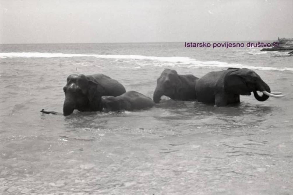 No, pokazalo se da to nije to bila zabluda. U fotografijama umirovljenog novinara Glasa Istre Ratka Radoševića ovjekovječeni su nevjerojatni prizori slonova koji se kupaju u Gortanovoj uvali i šeću na Valkanama.