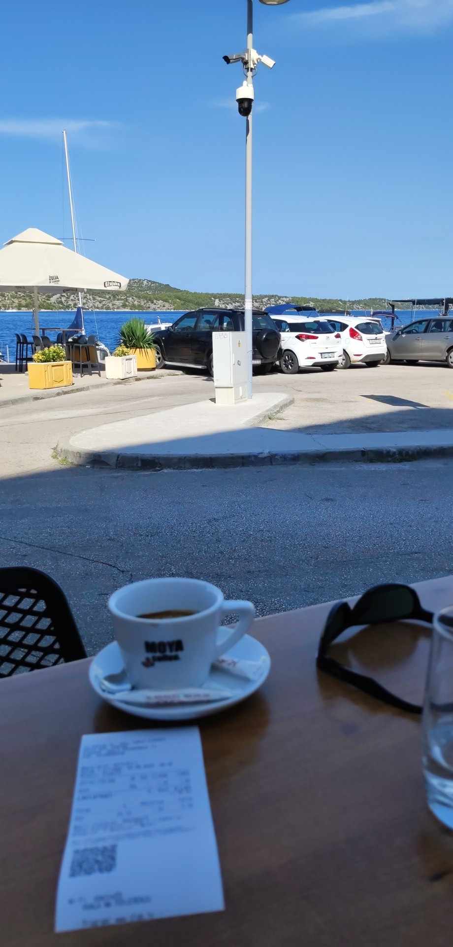 Kafić u šibenskom Docu, na rivi, uz samo more. U hladu i vlastitom miru za koliko? 1,5 eura!