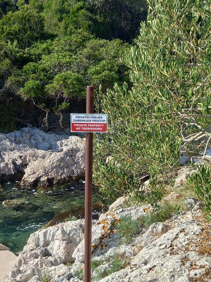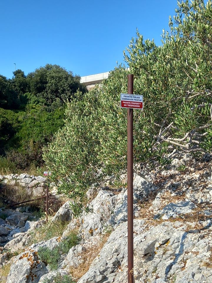 Naravno, vlasnik maslinika ima svako pravo ograditi svoj teren, zaključati vrata i staviti navedeni znak, no problem je ako to radi tik uz more, točnije 2-3 metra od mora.