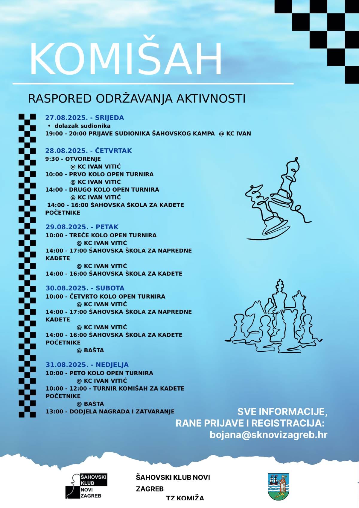 KOMIŽA - Krajem mjeseca u organizaciji Turističke zajednice Komiže, Grada Komiže i Šahovskog kluba Novi Zagreb, održava se šahovski kamp Komišah.