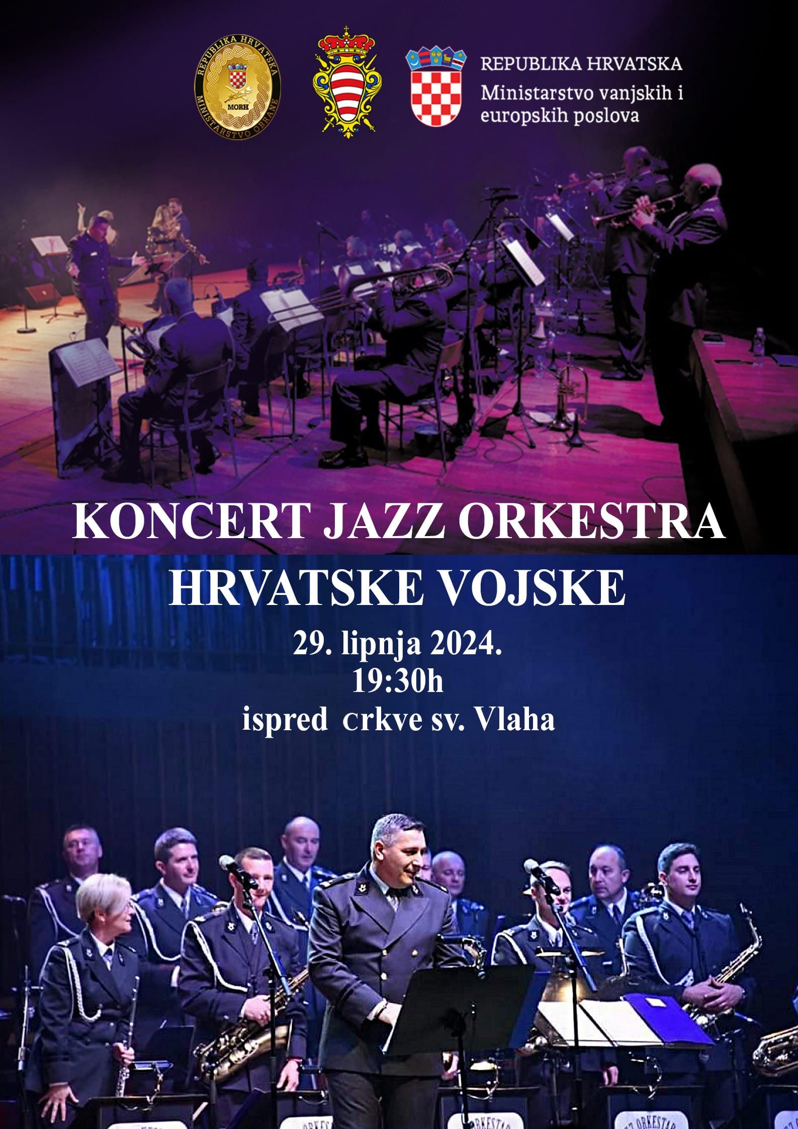 DUBROVNIK - U organizaciji Grada Dubrovnika i Ministarstva vanjskih i europskih poslova, u subotu 29. lipnja 2024. ispred crkve svetog Vlaha, održat će se koncert Jazz orkestra Hrvatske vojske.