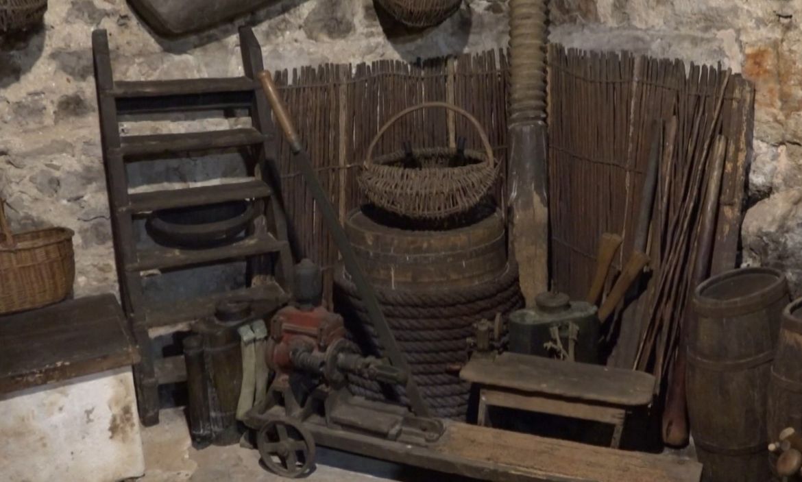 U konobi se nalaze 72 izvorna predmeta, među kojima bačve, kosci, turanj, mizarole...