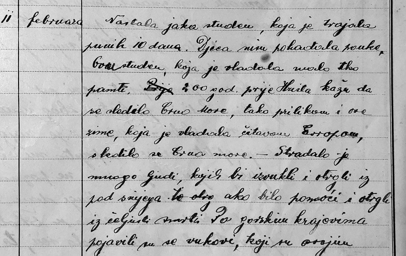 Nitko nije slutio da dolazi "zima stoljeća". Iz učiteljeva dnevnika: 11.veljače 1929. "Nastala je jaka studen koja je trajala punih 10 dana. Djeca nisu pohađala pouke. Ovu studen koja je vladala malo tko pamti..."