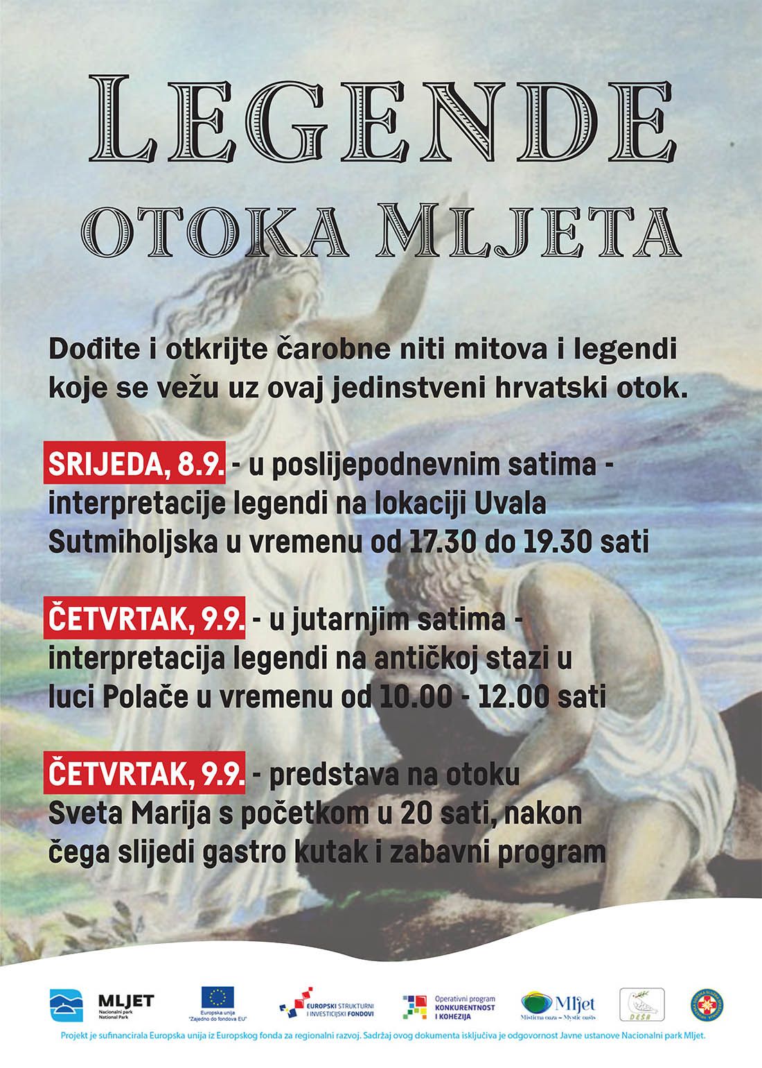 MLJET – Ljeto na mističnom otoku Mljetu privodi se kraju uz predstavu u kojoj će muza Kalipso stanovnike otoka i njihove goste još jednom provesti kroz čarobne niti mitova i legendi koje se vežu uz ovaj jedinstveni hrvatski otok. Događanja će se održati u srijedu 8. rujna od 17.30. do 19.30 u Uvali Sutmiholjskoj i četvrtak 9. rujna u Polačama od 10 do 12 h i navečer predstava i gastro kutak na otoku Sv. Marija u 20h.