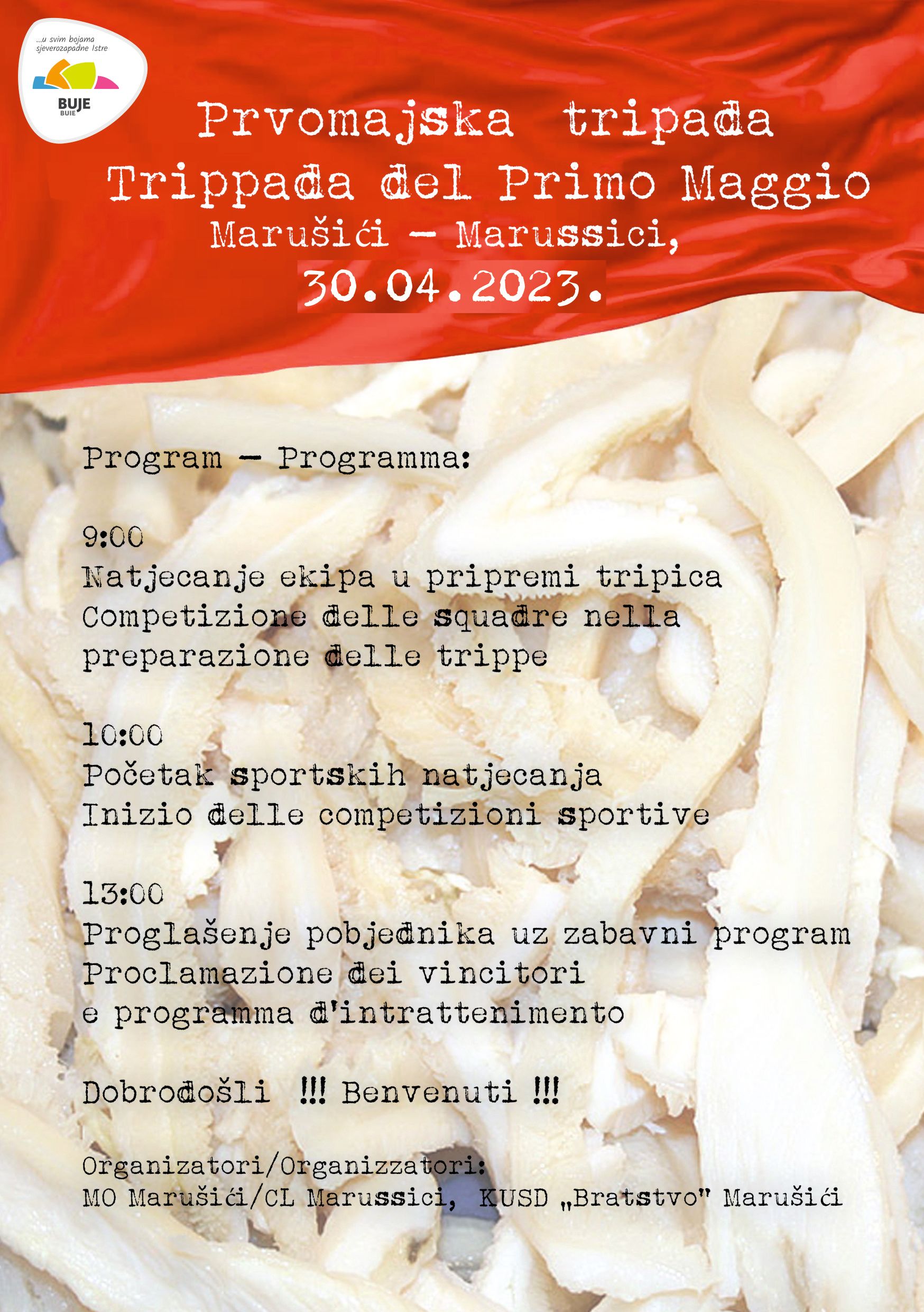 MO Marušići i TZ grada Buja, pozivaju sve na 5. istarsku Tripadu, natjecanje u pripremi tripa, u nedjelju 30. travnja na terasi pored parka skultura u Marušićima.