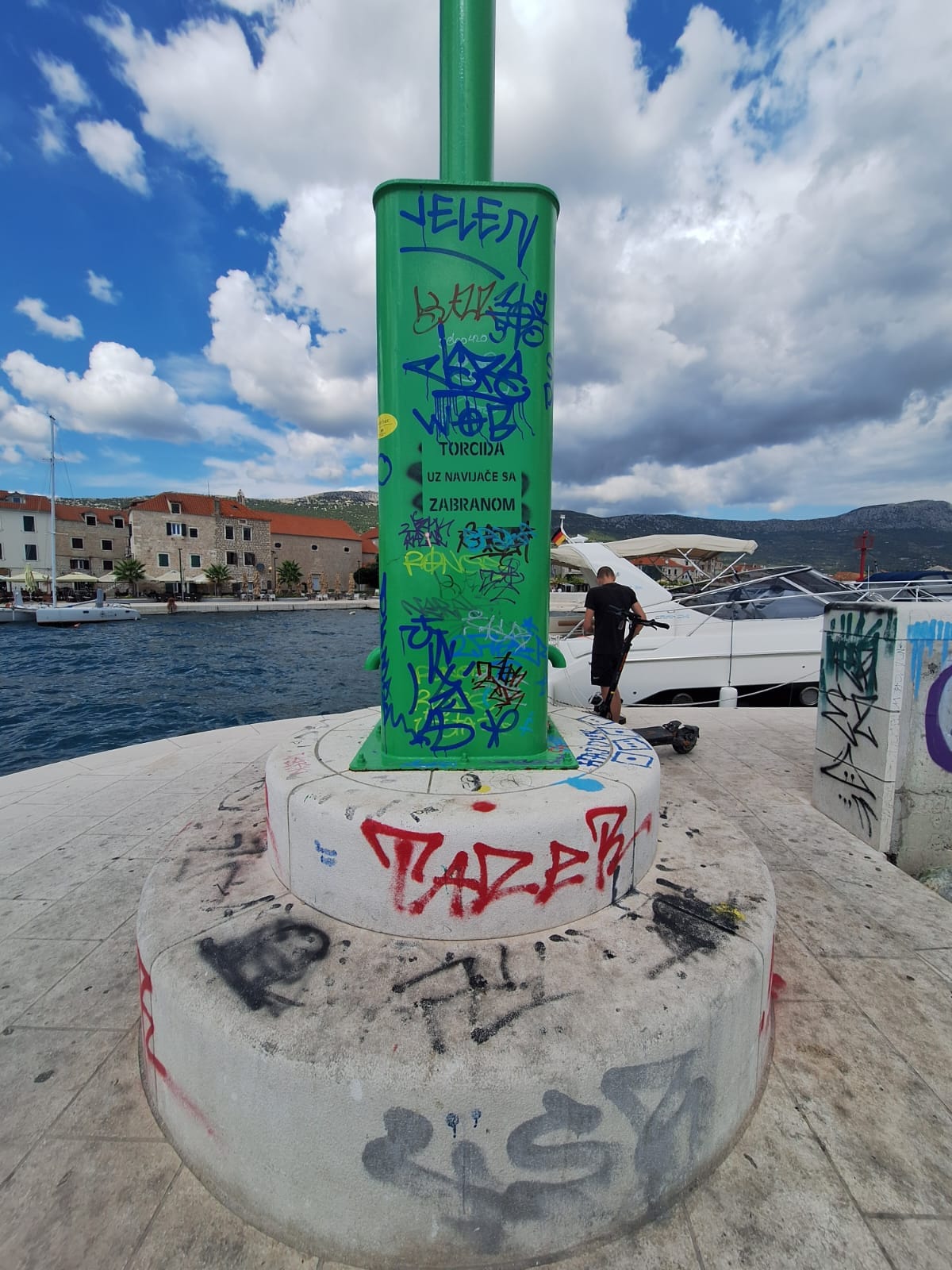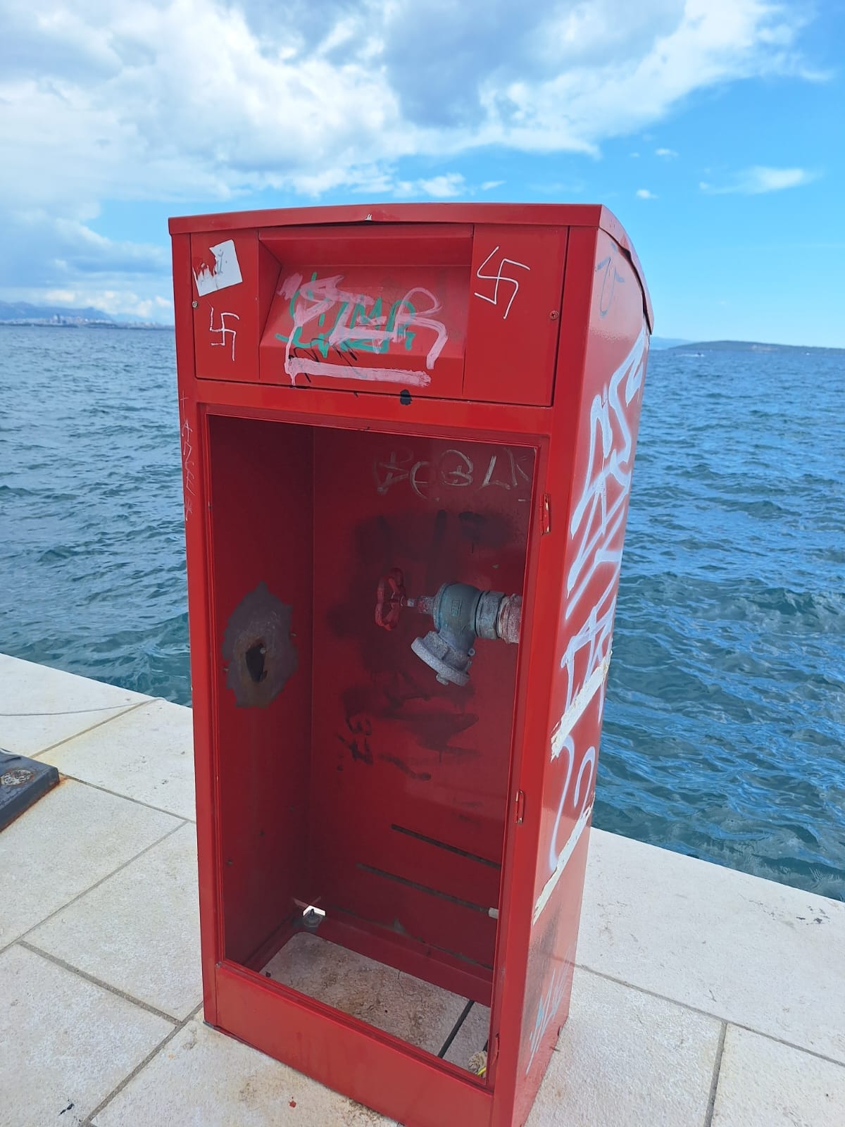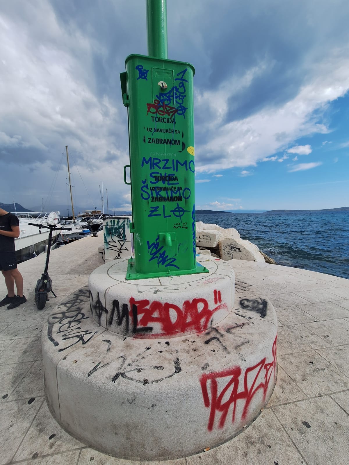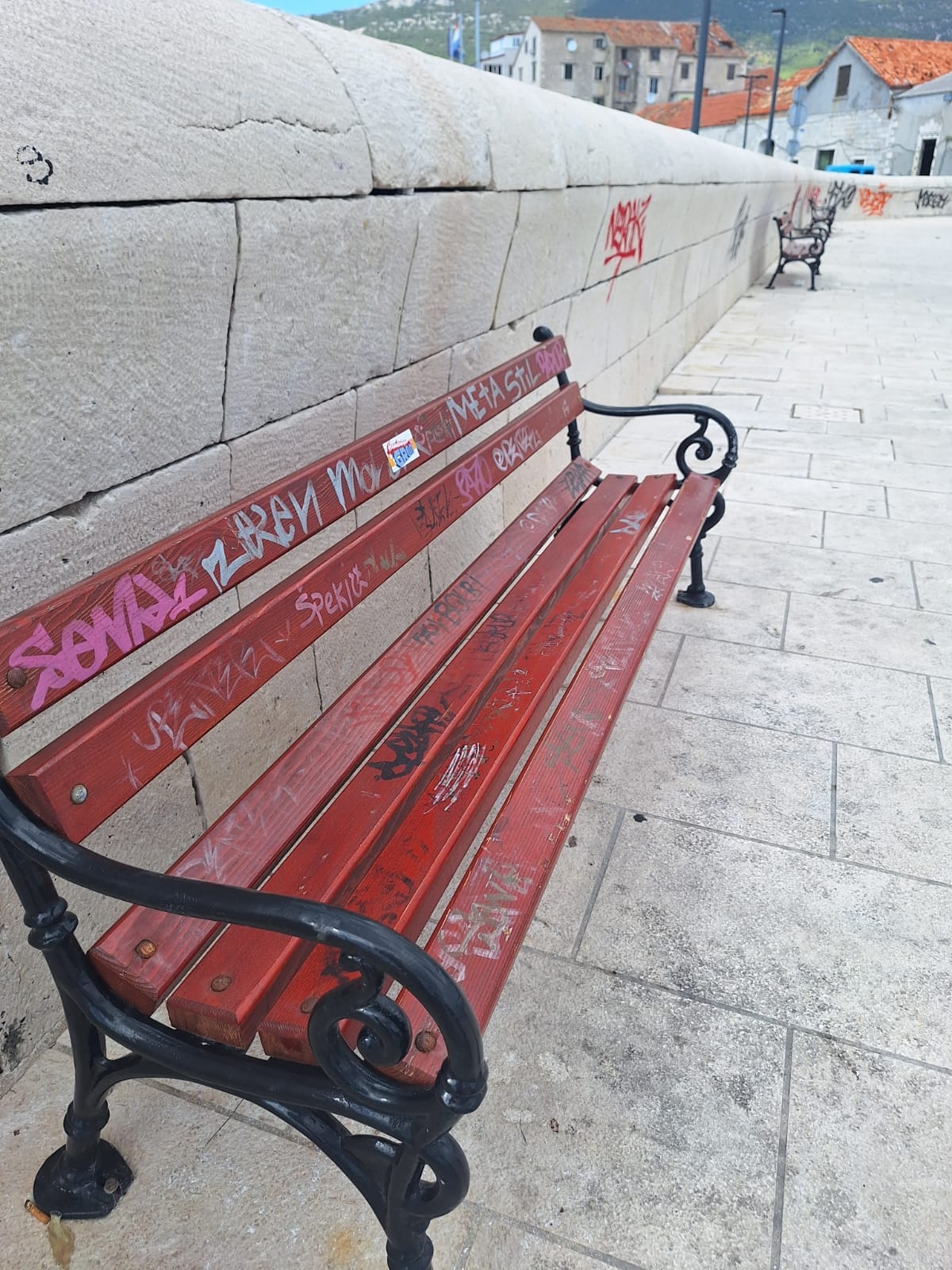 Dodatno, tu je i grafit "Srbomržnje" koji se već mjesecima nalazi na najprometnijom dijelu šetnice u Kaštel Starom, tik do luke. Uništavanje nije ništa manji problem od njegovog ignoriranja i nečinjenja onih čiji je posao upravljati javnom imovinom - poručuju čitatelji koji nam šalju ove snimke užasnog nemara.