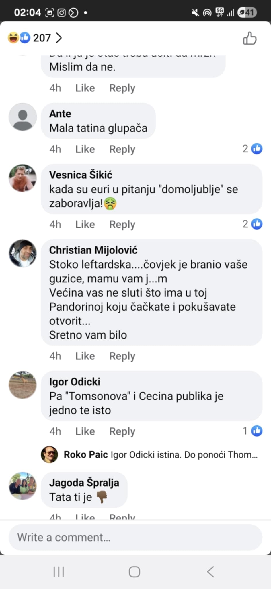 "Stoko leftardska, čovjek je branio vaše guzice mamu vam j...m. Većina vas ne sluti što ima u toj Pandorinoj kutiji koju čačkate i pokušavate otvorit. Sretno vam bilo" - uspio je napisati Christin Mijolović.
