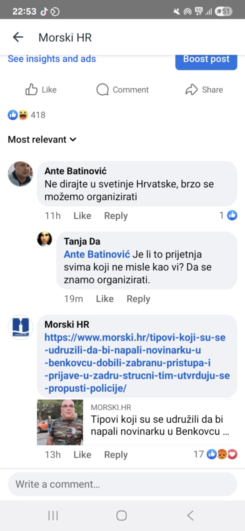 U međuvremenu na adresu Morskog HR stiglo je i ponešto prijetnji ali i uvreda podržavatelja zabranitelja kulture i branitelja cajki.