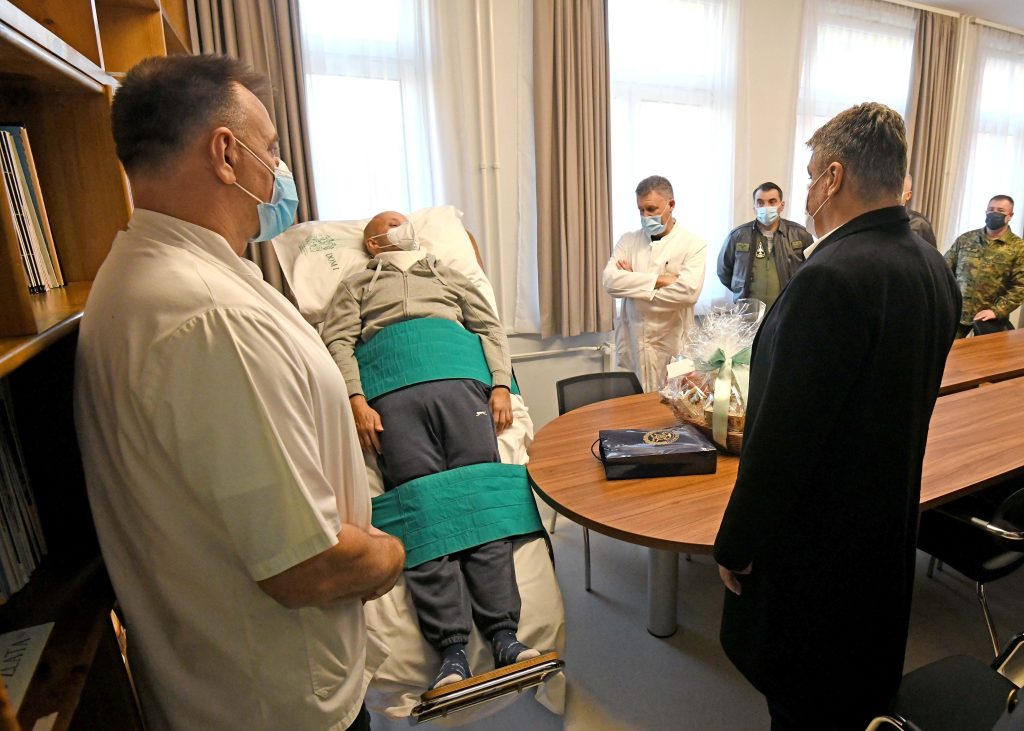Predsjednik Republike i vrhovni zapovjednik Oružanih snaga Republike Hrvatske Zoran Milanović posjetio je danas u Varaždinskim Toplicama bojnika Ivana Lukana, pilota HRZ-a koji je ozlijeđen u nedavnom padu aviona MIG-21.
