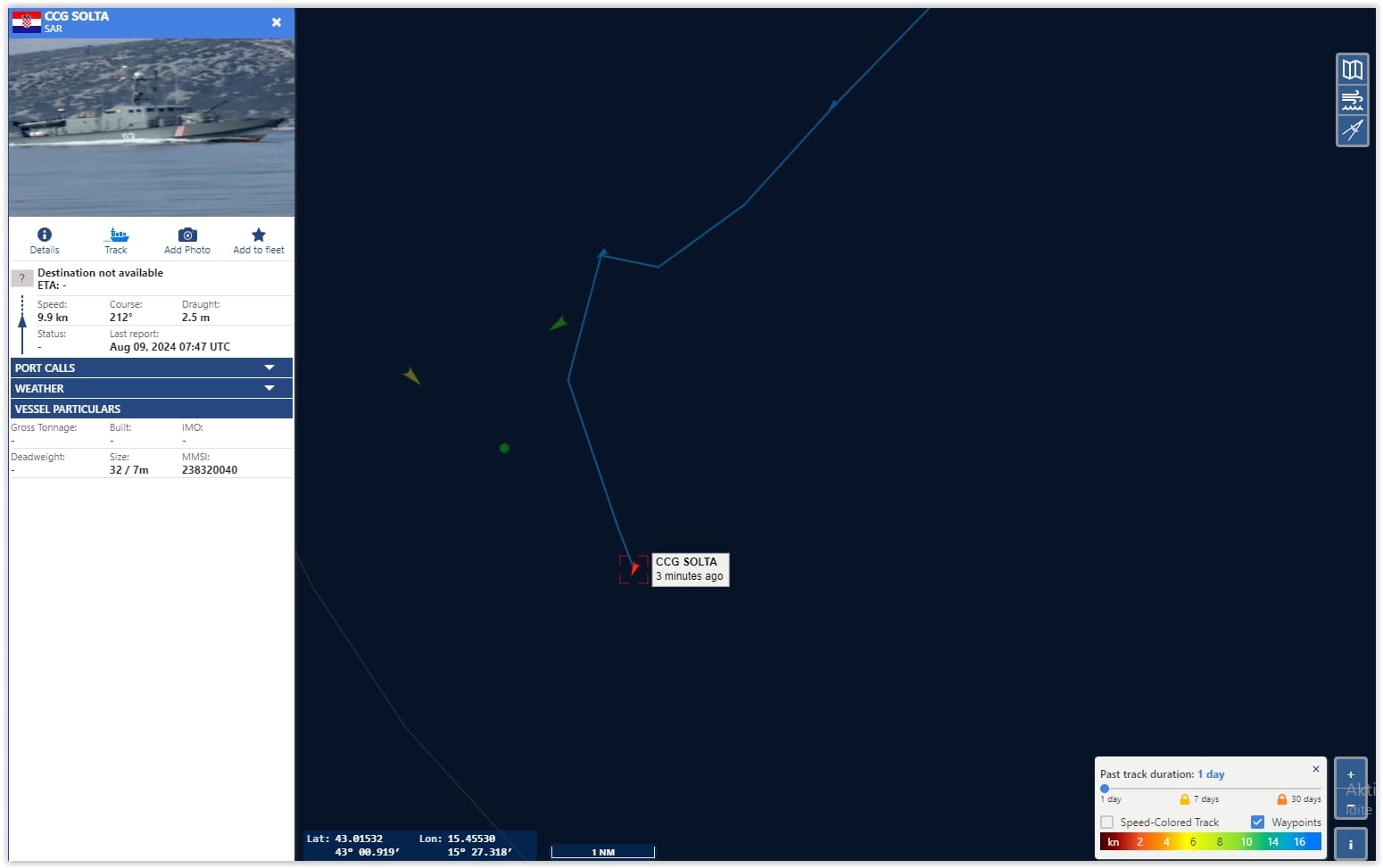 Nacionalna središnjica za usklađivanje traganja i spašavanja na moru u Rijeci (MRCC) koordinira akciju traganja i spašavanja za nestalom osobom u moru viškog arhipelaga, koja je pokrenuta jutros, 9. kolovoza u 05.00 sati, nakon zaprimanja dojave zapovjednika putničkog broda tijekom plovidbe nedaleko otočića Jabuka, iz smjera Dubrovnika prema Zadru.