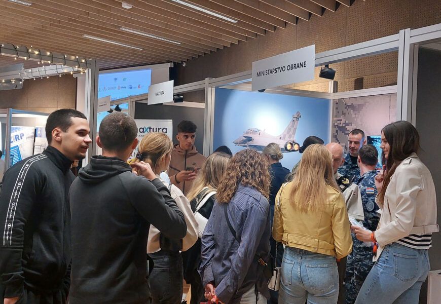 Djelatnici Središnjice za upravljanje osobljem, kadeti Hrvatskog vojnog učilišta, pripadnici Hrvatskog ratnog zrakoplovstva, Hrvatske kopnene vojske i Hrvatske ratne mornarice predstavit će zainteresiranim srednjoškolcima sveučilišne studijske programe Hrvatskog vojnog učilišta “Dr. Franjo Tuđman”: Vojno vođenje i upravljanje, Vojno inženjerstvo te Vojno pomorstvo, zvanje vojni pilot, zanimanje kontrolor vojnog zračnog prometa i dragovoljno vojno osposobljavanje.