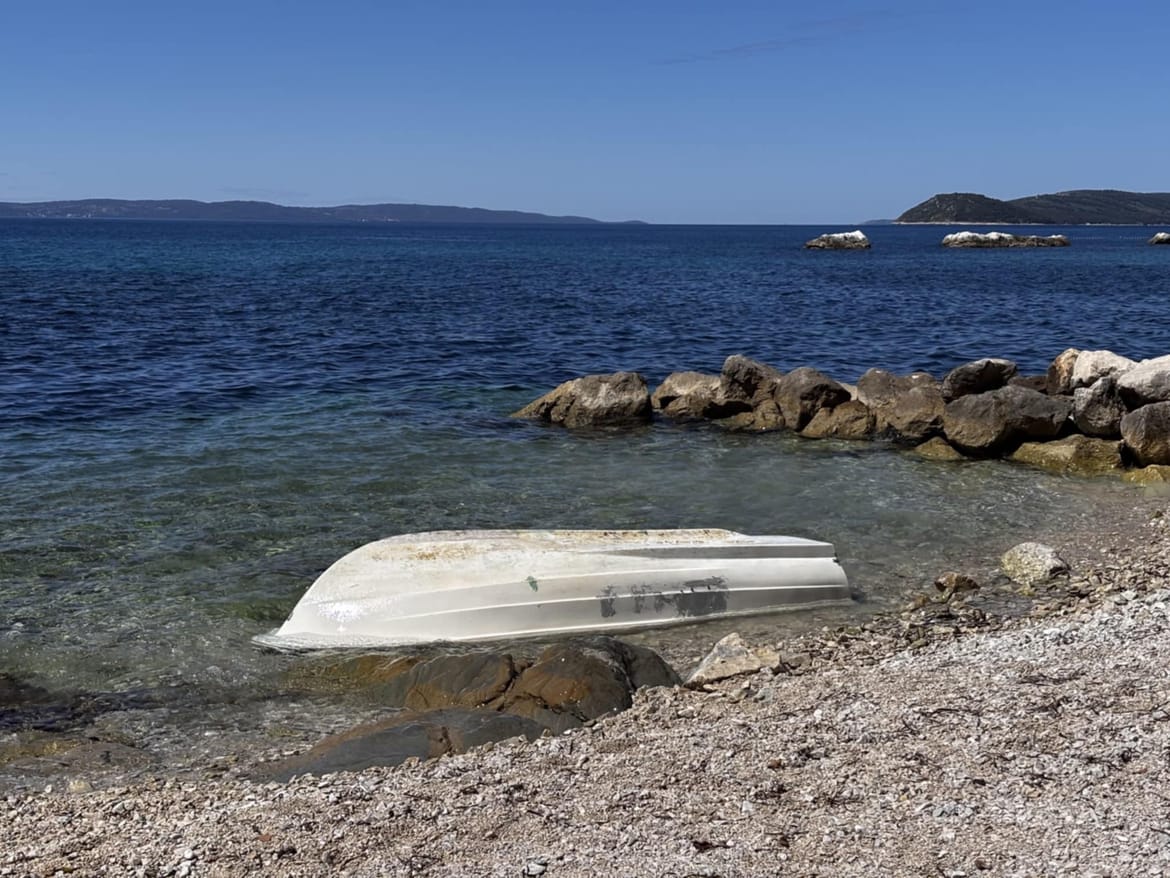 Na kaiću nema vidljivih registracijskih oznaka, a valovi su je, izgleda, prevrnuli.