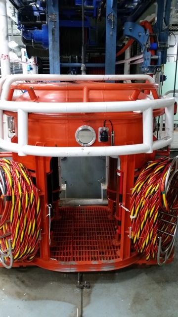Da je NASA imala ovo, zaista bi stigli na Mjesec. Svaki pomični element ima svoj senzor koji na monitorima pokazuje dubinu zvona, vertikalni otklon od osi broda, dužinu sajle i glavne pupkovine, tlakove svega u svim tankovima, trzaje broda uzrokovane valovima amortizira konstantnim aktivnim popuštanjem ili skraćivanjem sajle i pupkovine, u zvonu su rezervne banke zraka, kisika i 2 helioxa, rasvjeta oko zvona je bolja nego kod nas na Božić… 3 pupkovine po 100 m što znači da teoretski ronioc može stići do dubine od gotovo -200 m, video nadzor u zvonu i 6 vanjskih kamera koje pokrivaju doslovno sve oko zvona, ispod i iznad njega.