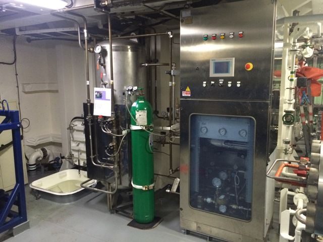 Trostruka centrala za napajanje toplom vodom roniocima i zvona te grijanje komora. Svaka od 3 centrale ima 3 napajanja vodom i 3 izvora struje. I još se može ispospajati sve sa svačim. Tank jedne centrale, pumpa s druge a grijač s treće, i još predgrijana voda brodskog sistema.